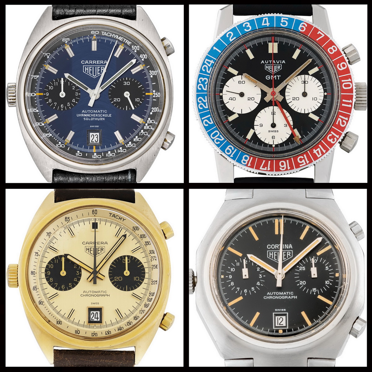- Sunday, May 12, Antiquorum, Geneva — 13 Heuers. Links to OnTheDash gallery / Antiquorum catalog.