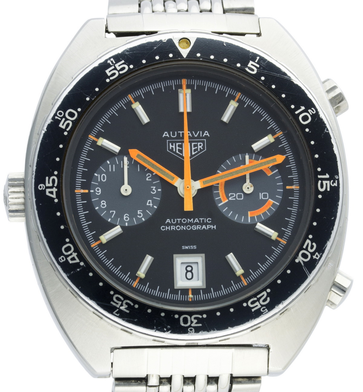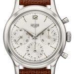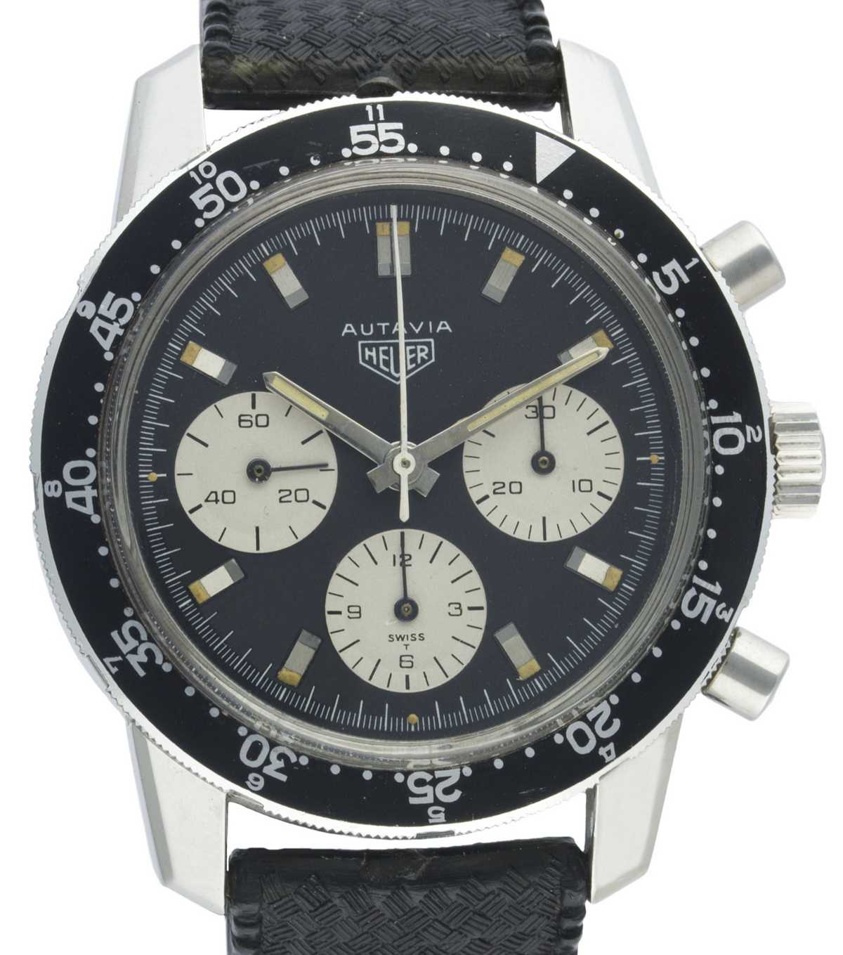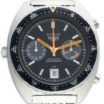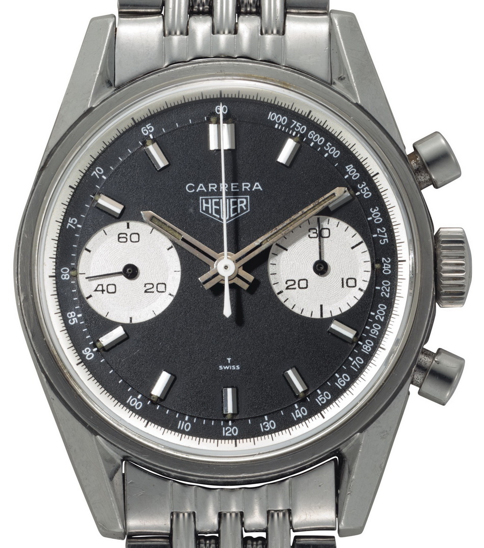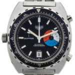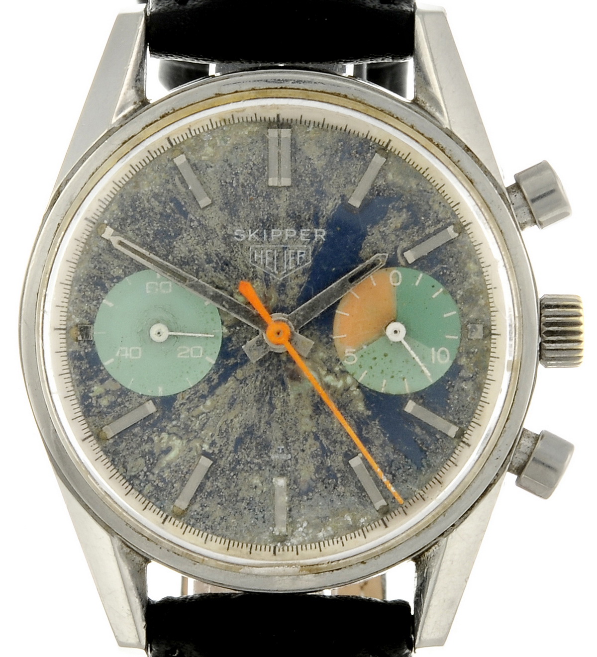 November and December are always busy months for watch auctions, and in Fall 2016 the vintage Heuers were well represented in auctions conduced by Phillips, Christie’s, Sotheby’s and Watches of Knightsbridge. In this posting, we show the 45 Heuers that were offered in these auctions, together with their “final prices” (comprised of the hammer price plus the applicable buyer’s premium). In addition, we feature one unusual vintage Skipper, that was sold by Fellows. For readers who want to do additional research, we provide the links to all the auction catalogs.