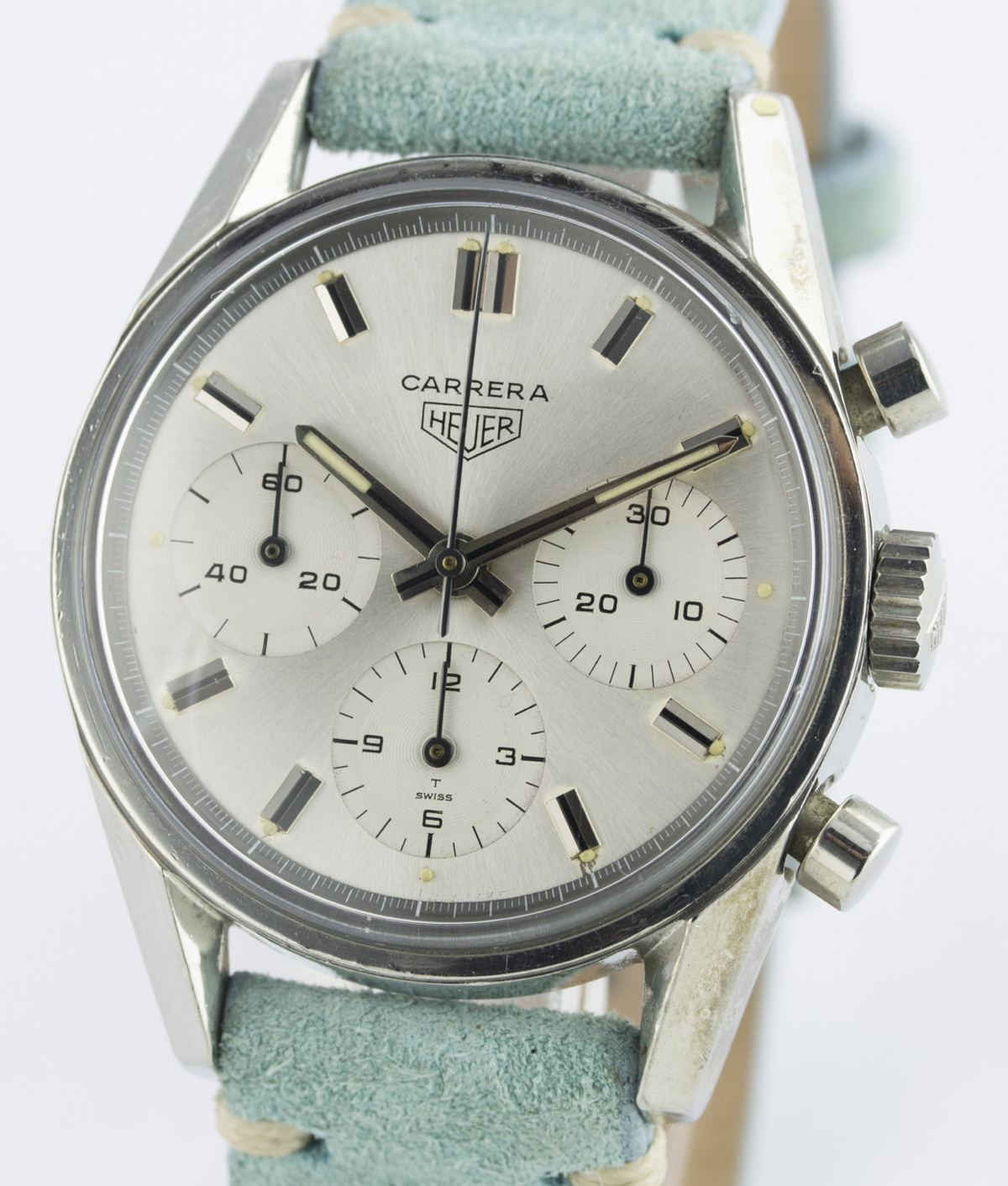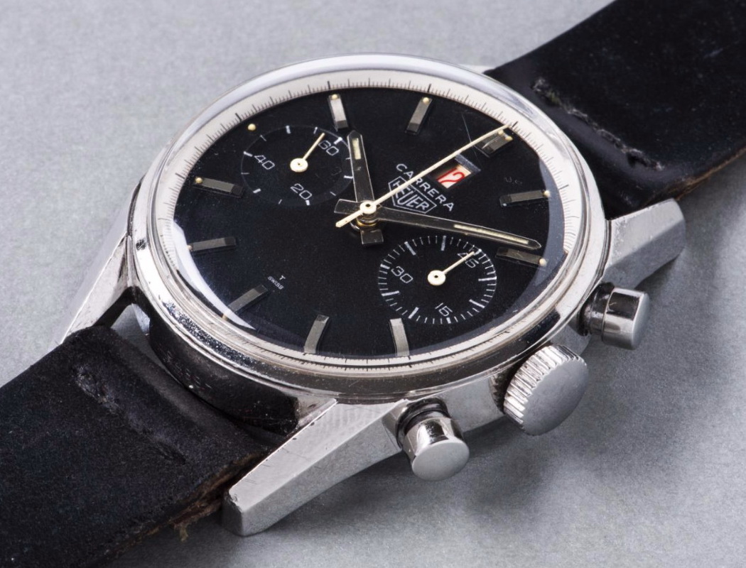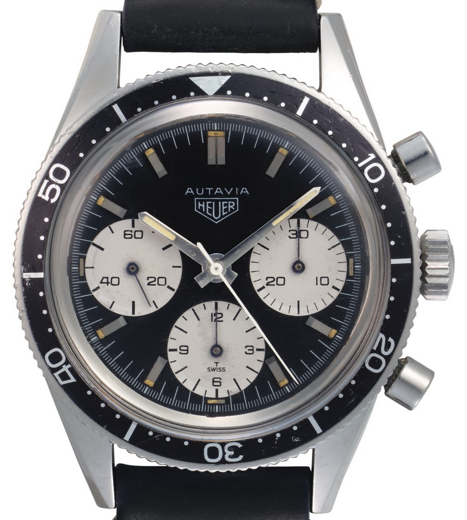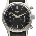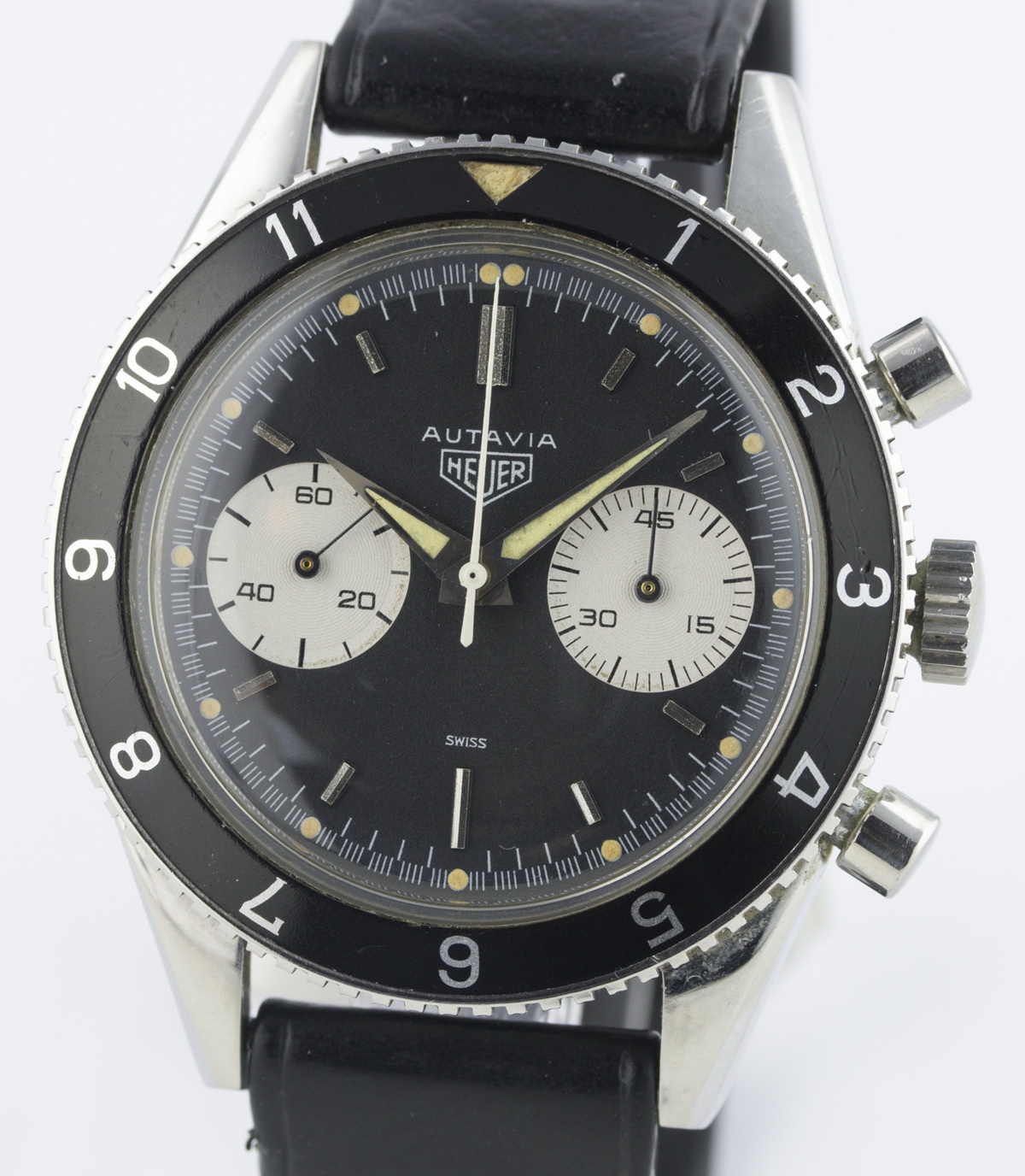 November and December are always busy months for watch auctions, and in Fall 2016 the vintage Heuers were well represented in auctions conduced by Phillips, Christie’s, Sotheby’s and Watches of Knightsbridge. In this posting, we show the 45 Heuers that were offered in these auctions, together with their “final prices” (comprised of the hammer price plus the applicable buyer’s premium). In addition, we feature one unusual vintage Skipper, that was sold by Fellows. For readers who want to do additional research, we provide the links to all the auction catalogs.