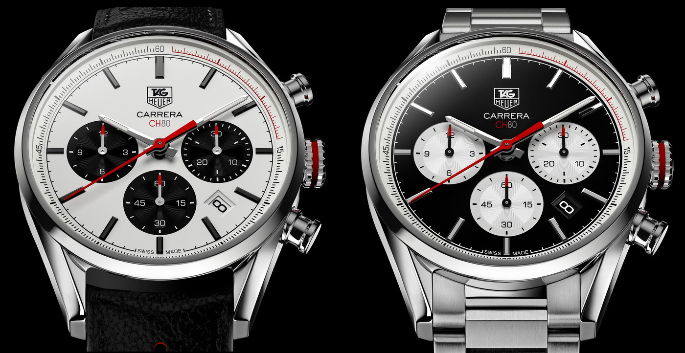 At Baselworld 2014, the movement returned as the “CH80”, so named because it was then intended to power not only the Heuers, but a variety of Swiss chronographs, and had an 80-hour power reserve. The CH80 was shown in prototypes for a new Carrera, with these prototypes having contrasting registers, black-on-white or white-on-black.