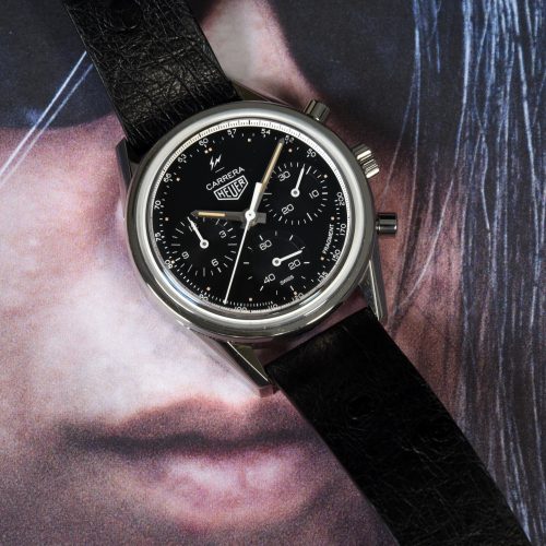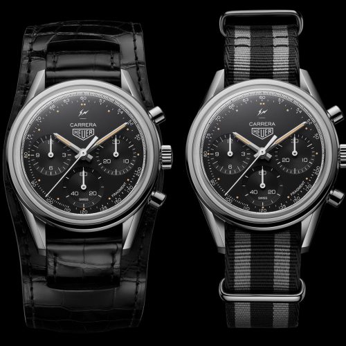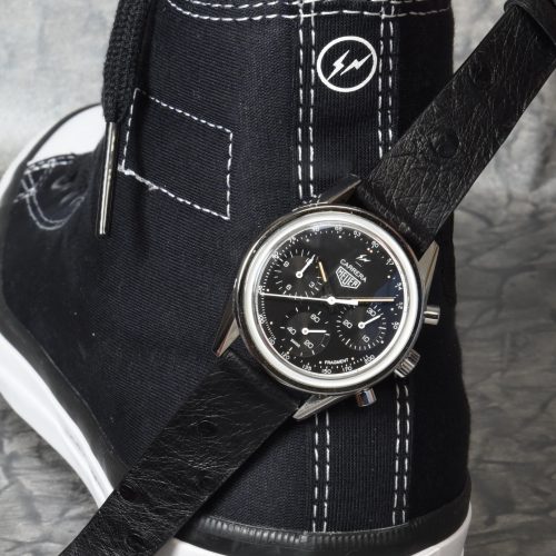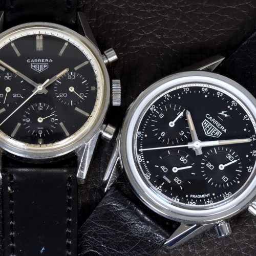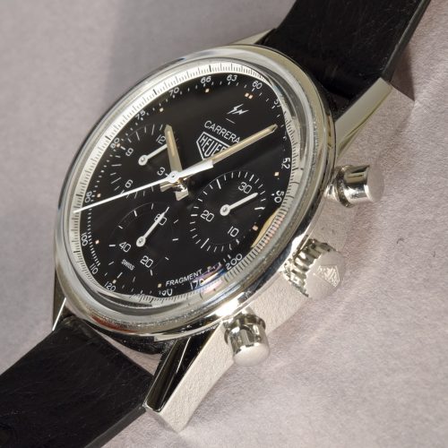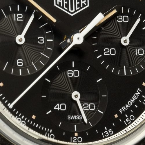 In the Carrera by Fragment Design, streetwear legend Hiroshi Fujiwara combines three brilliant elements to produce what may be the most important new Carrera since 1969. We begin with the Carrera Reference 2447 NT, from 1968, house it in a 38 millimeter “glassbox” case, and power it with the Heuer 02 in-house movement. Fujiwara then enhances the watch, adding energy to a 50 year-old design and positioning it to carry the Carrera name for many years ahead. In December 2018, the Fragment Carrera was offered as a limited edition of 500 watches, at a price of $8,100, and sold out quickly in most major markets.
