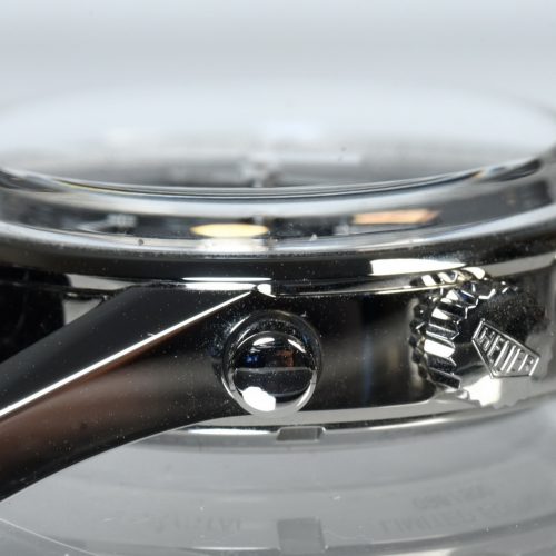 In Operation. The Heuer 02 has an excellent feel to it. Winding is smooth, but with enough feeback that you can tell that you are winding the movement. The crown is a bit small (5.8 mm), compared with either the vintage predecessors or TAG Heuer’s modern Carreras, but not to the point of being inconvenient. When setting the time, the crown provides a good feel and it is easy to align the minute hand to the chosen hash-mark, for those who like the minute hand to be in synch with the running second hand. Operation of the chronograph also offers a solid feel, with just the right amount of force for the start / stop / reset.