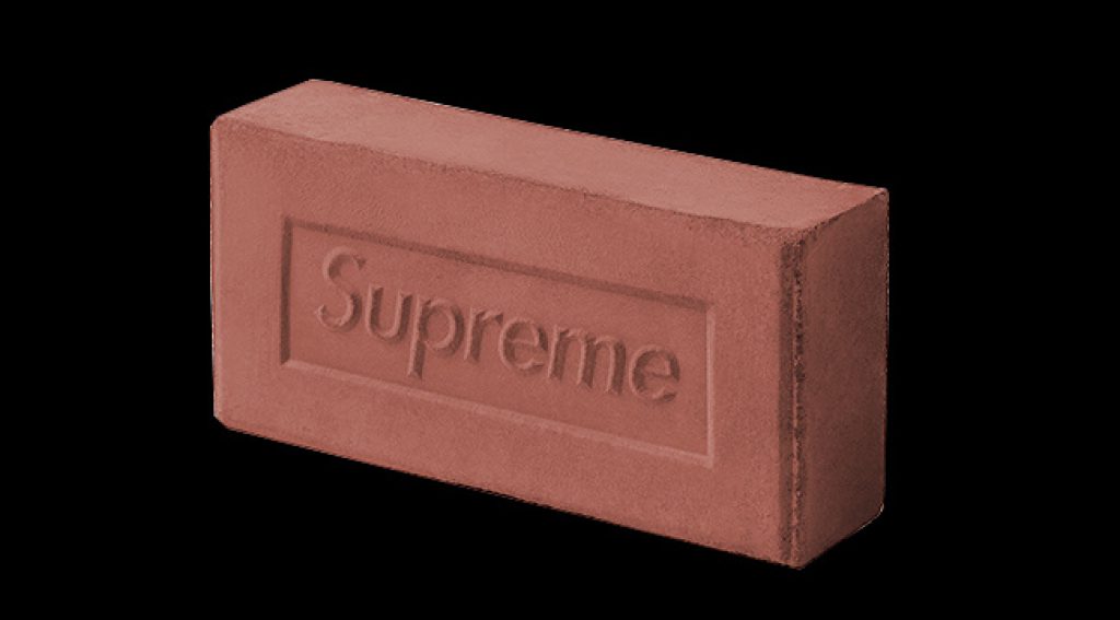 The ultimate example of luxury streetwear? A red clay brick costs about 50 cents here in Georgia. Supreme puts its logo on a red clay brick, and sells it as a limited edition for $30 per brick. The limited edition Supreme bricks sell out quickly, so if you want one, you’ll need to check one of the resale sites. The current price on Gariled — $150 to $250. But be careful, you have to assume that there are counterfeits out there.