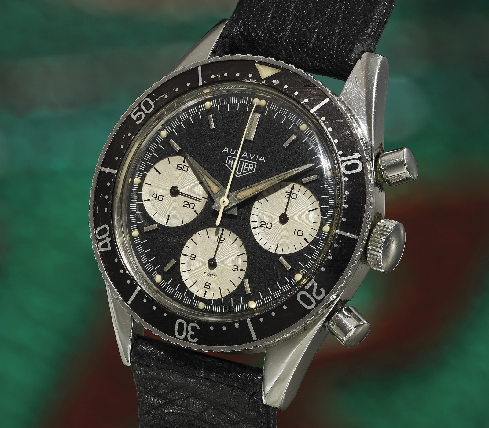 Special thanks to Phillips Auction House for allowing me to use multiple images from the “Heuer Parade” auction, held in November 2017, including the beautiful hero image for this posting that shows five of the “grails”. Other images from Phillips include the following – Autavia, Ref 3646; Autavia, Ref 2446, second execution dial; Carrera, Ref 2447 Yachting; Autavia, Ref 2446 GMT; Carrera, Ref 2447 SN; Carrera, Ref 2447 NST; Carrera 45 Dato, with Indianapolis Motor Speedway logo; Carrera, Ref 1158 CHN; Autavia, Ref 1563 “Exotic”; and Monaco, Ref 74033 N (two photos). Be sure to follow @PhillipsWatches on Instagram.