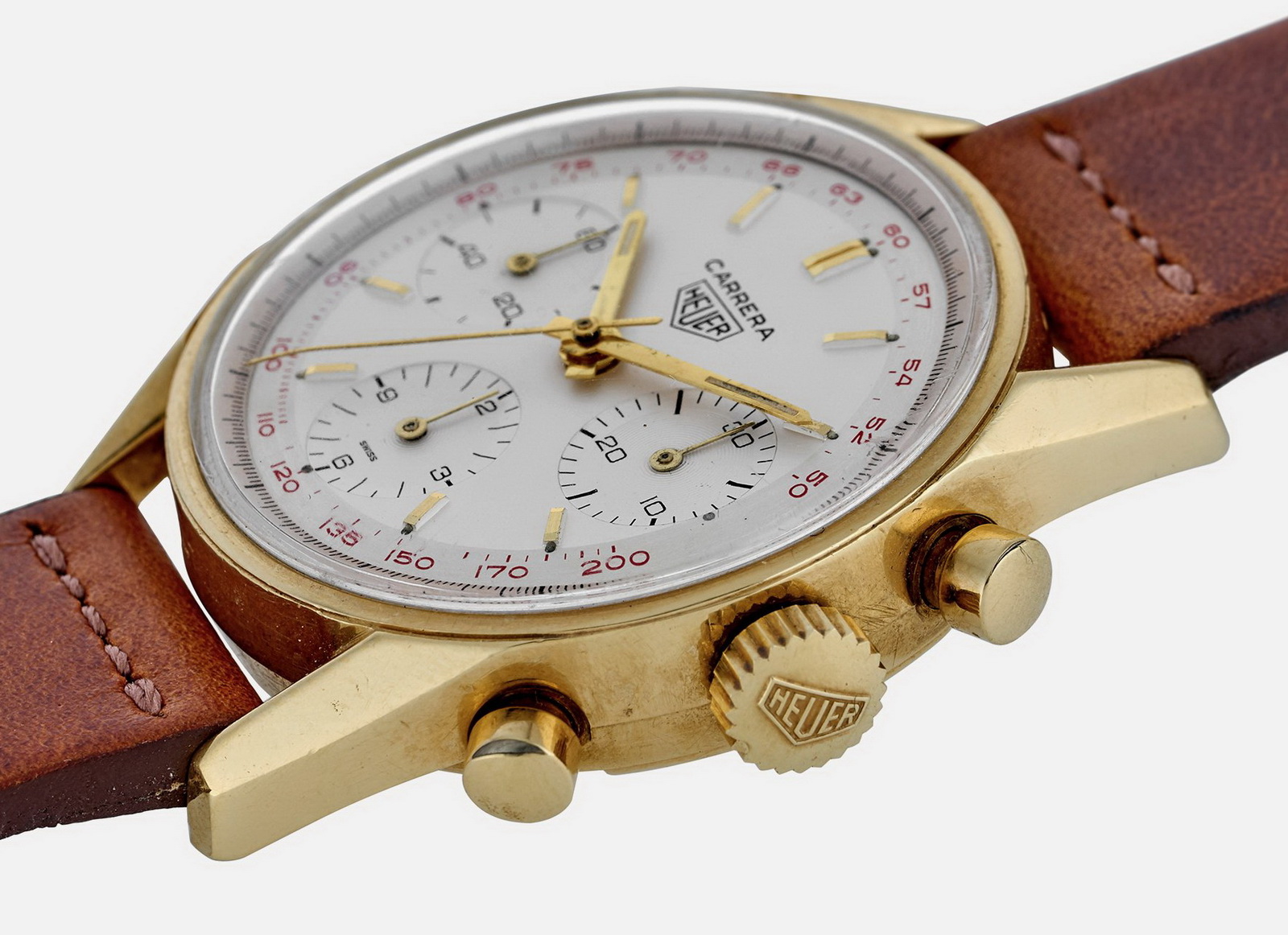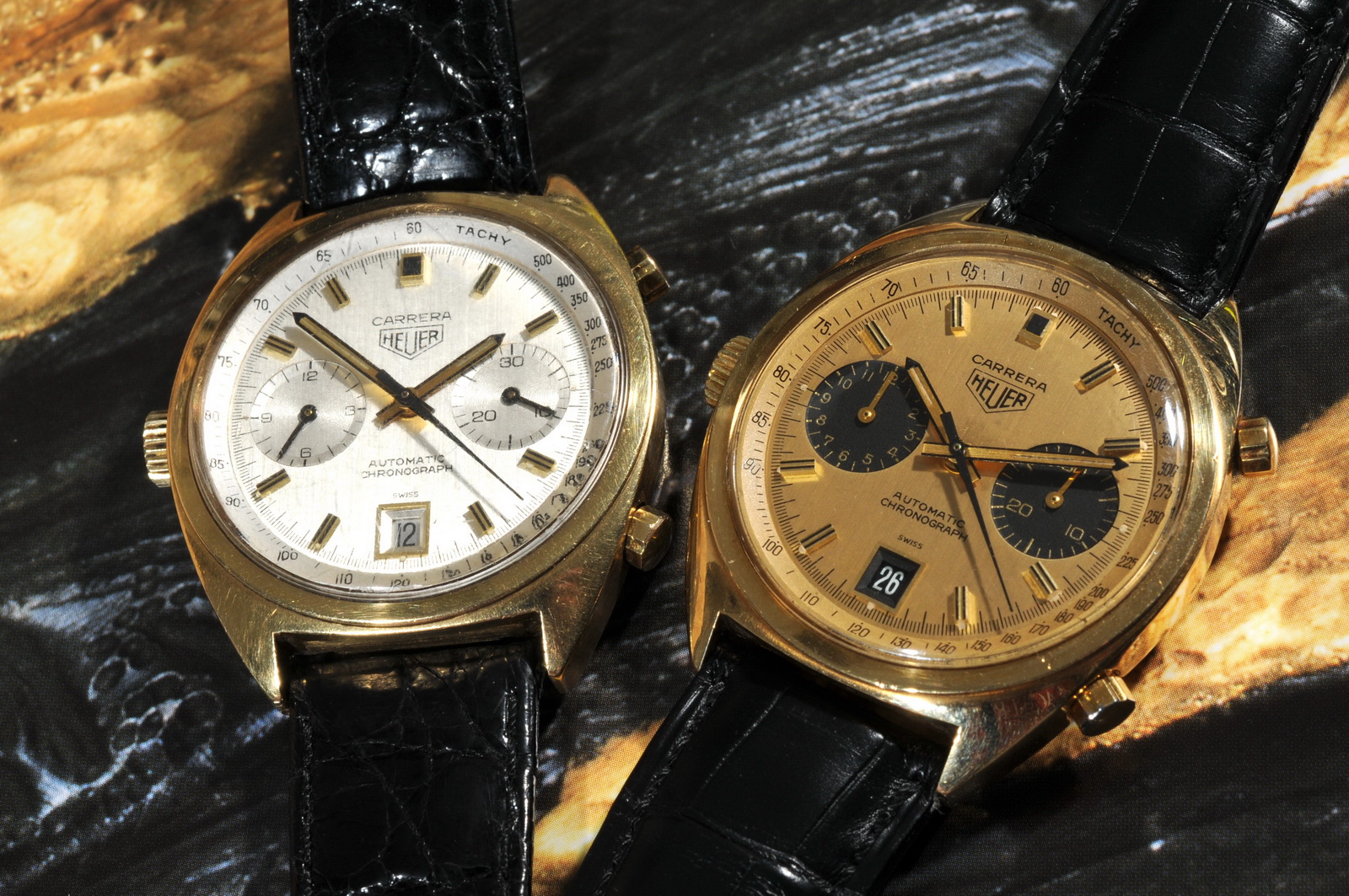 The Next Best Thing. Heuer made gold-plated Carreras in the 1970s, with the same style C-shape cases as the Reference 1158 models, but these are not a good substitute for the 18 karat gold watches. A better choice might be the 18 karat gold Carrera from the 1960s (Reference 2456). These are manual-wind Carreras powered by the Valjoux 72 movement. They are more scarce than the automatic models, but sell at a discount compared with most of the 18 karat gold automatic models.