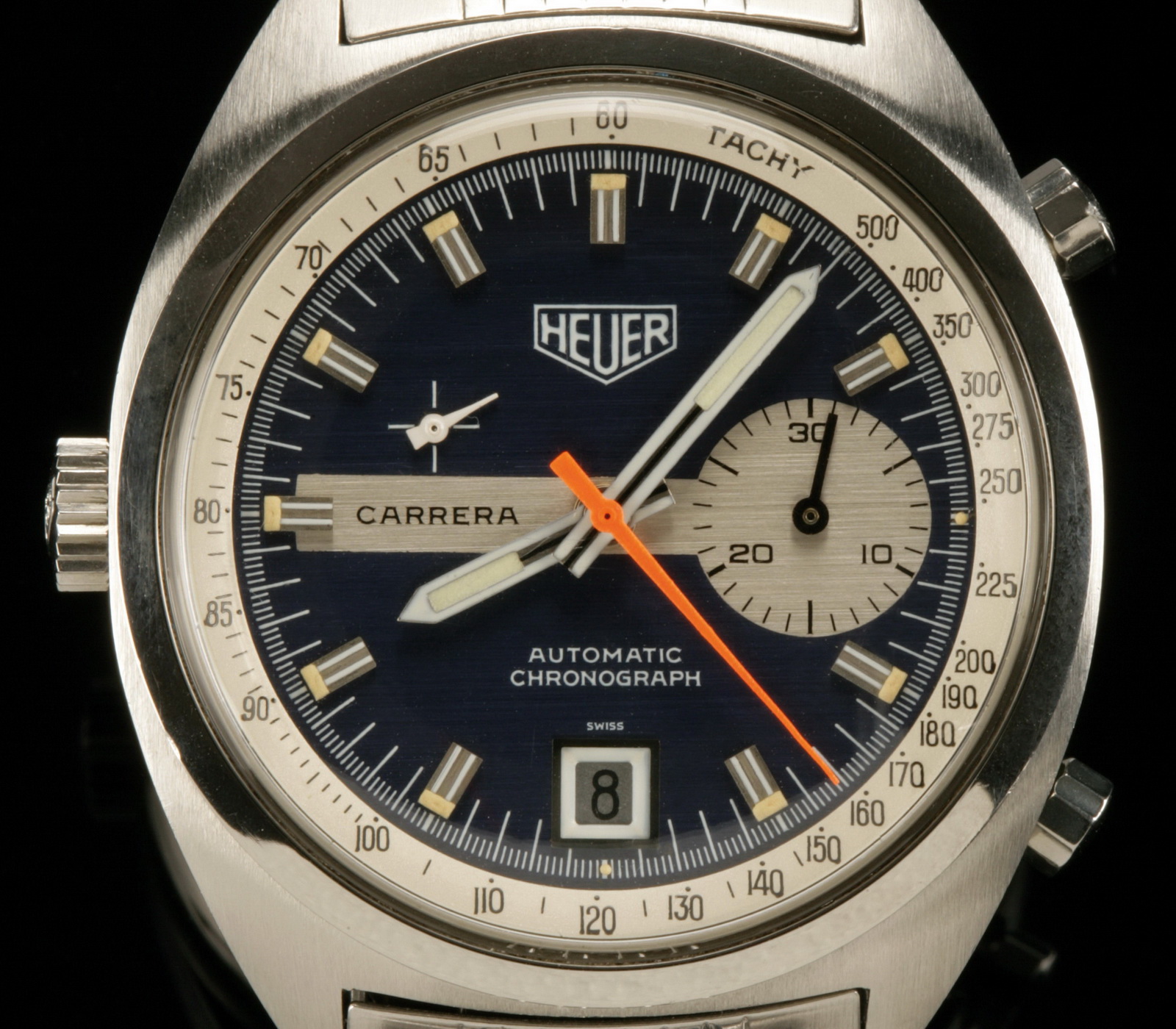 Why It’s a Grail. While the premise of the Carrera was that all decoration and “extra” scales had been removed, there is something special about the tachymeter scale. Just ask the folks who collect the Rolex Daytonas and Omega Speedmasters. While there were tachymeter scales on the Carreras almost from the start, Heuer got it right when it put the white scale around the edge of the all-black dial, circa 1965.