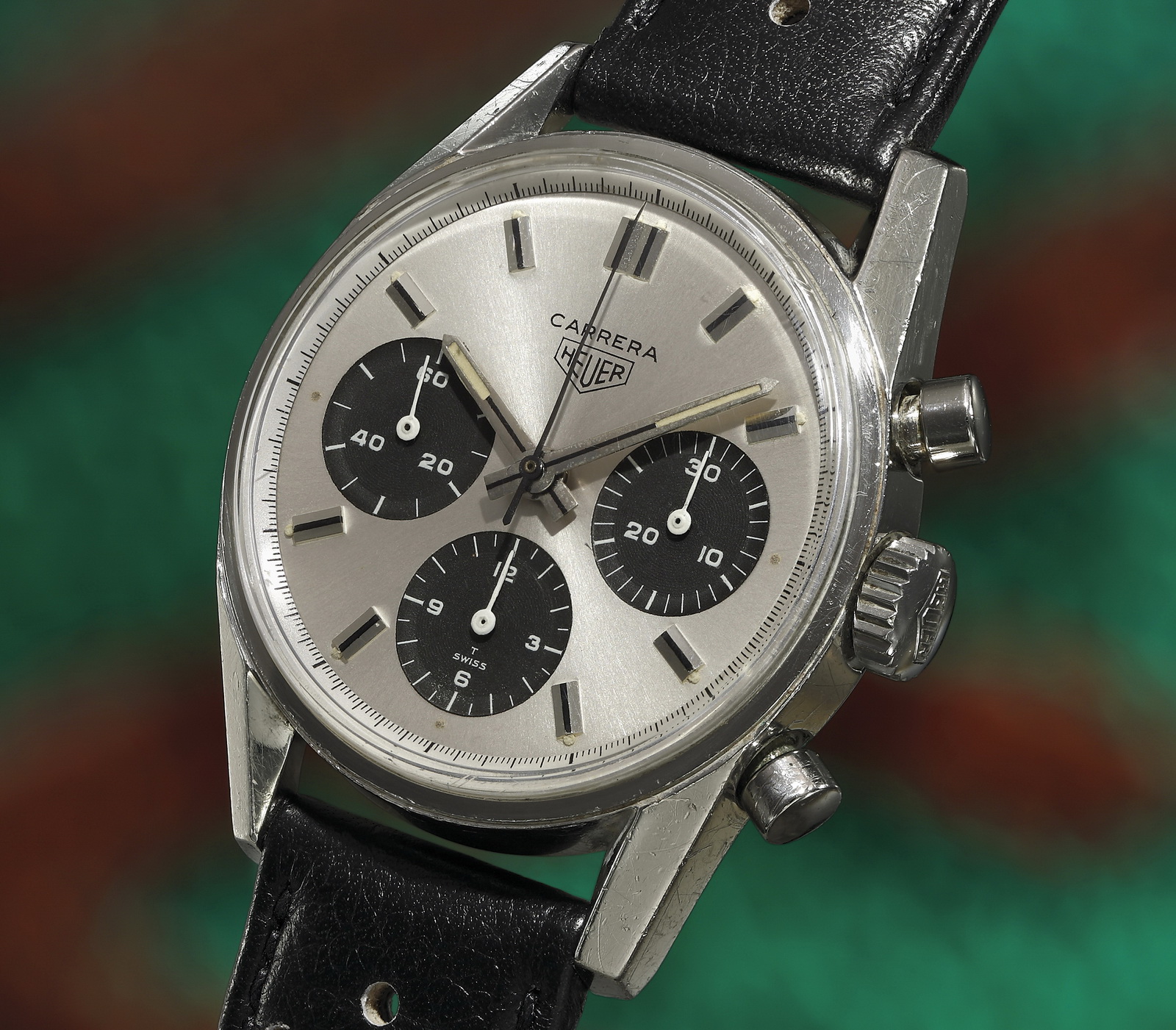 Why It’s a Grail. For the first generation of Carreras (1963 to 1967), the ones with white dials had white registers and the models with black dials had black registers. With the second generation models, introduced around 1968, Heuer offered contrasting registers – black registers on the white dials and white registers on the black dials. As with the first generation Carreras, there were also executions with the tachymeter scale printed on the dial. On the Reference 2447 SN, the black registers are larger than on the other models, giving the model an especially dramatic style.