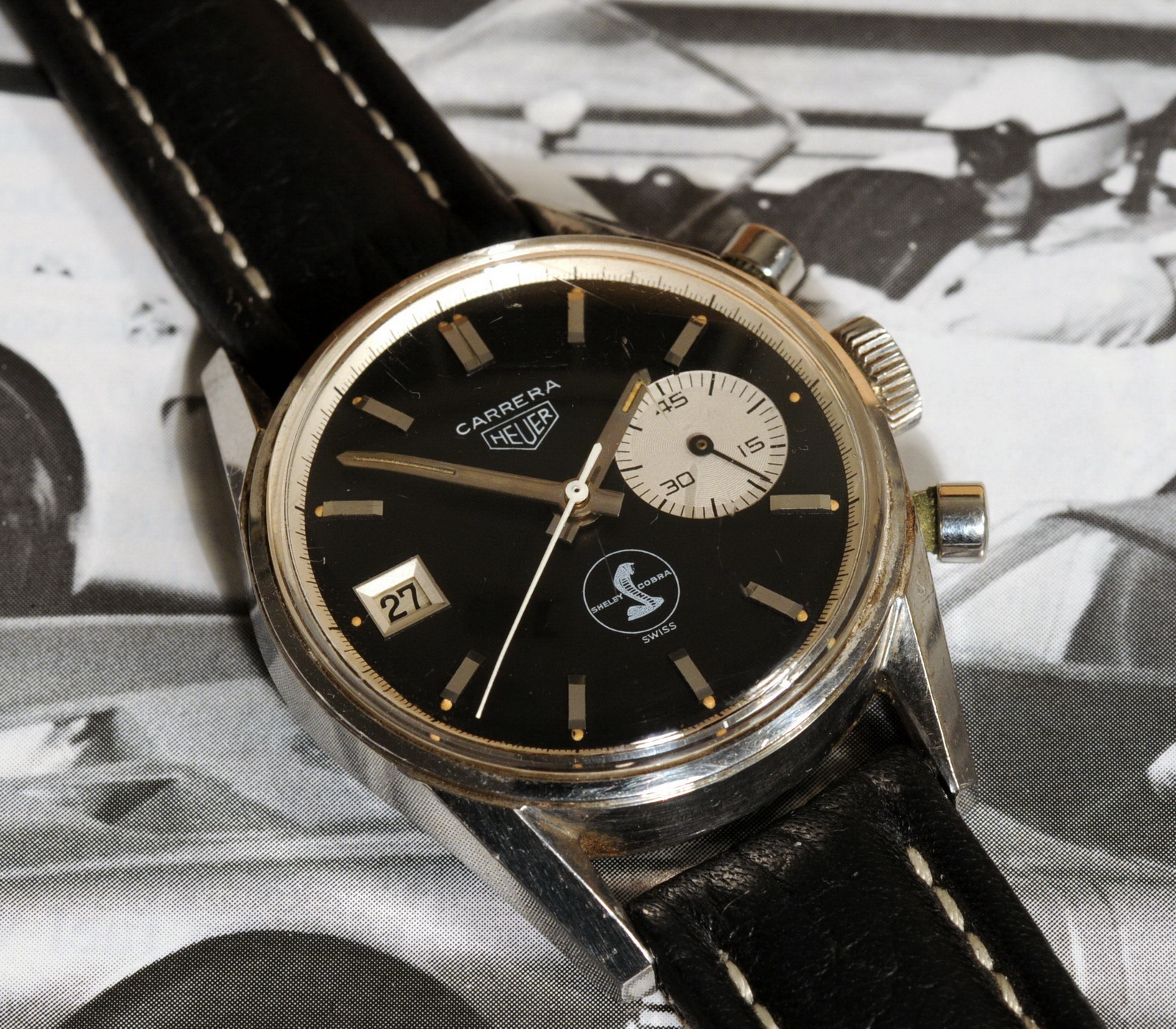 The Watches. In the mid-to-late 1960s, Heuer produced chronographs with logos on the dials for brands connected to motorsports. Among these racing-related logos are ones for the Indianapolis Motor Speedway (Autavia and Carrera 45 Dato), Shelby Cobra (Carrera 45 Dato), Mercury Cougar (Carrera 45 Dato), and Sunray DX (Carrera 45).