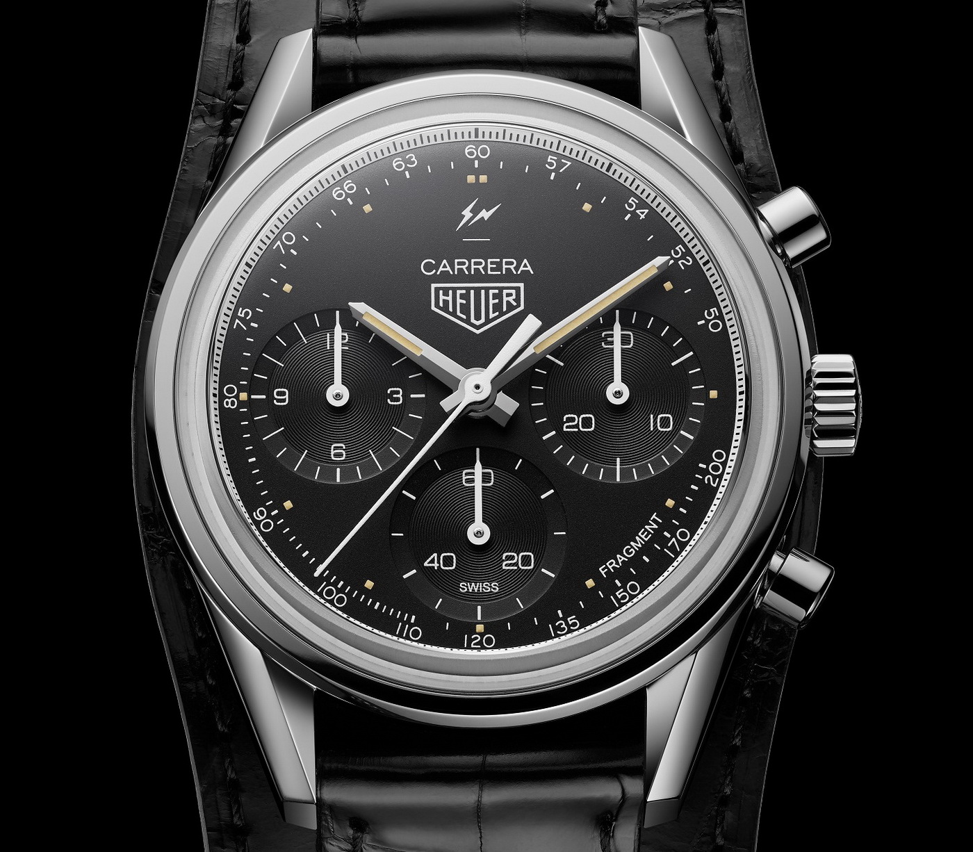 The Next Best Thing. The three register model is the grail, but Heuer also put the white tachymeter scale around the edge of the two-register Carrera (Reference 3647 NT). The two register model won’t be much easier to find, but it may be a bit less expensive than the three register model. Another option is the re-issue released by TAG Heuer in November 2018, designed by streetwear legend Hiroshi Fujiwara (Fragment Design). This is a three register model, powered the Heuer 02 movement, produced in a limited edition of 500 watches. The Limited Edition sold out, but you can find them in the after-market at around the original price.