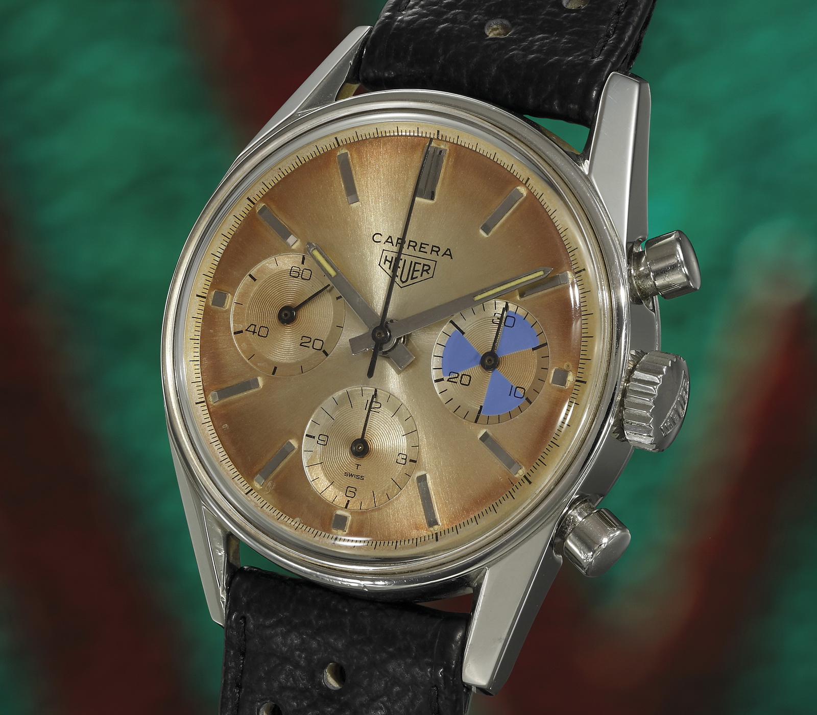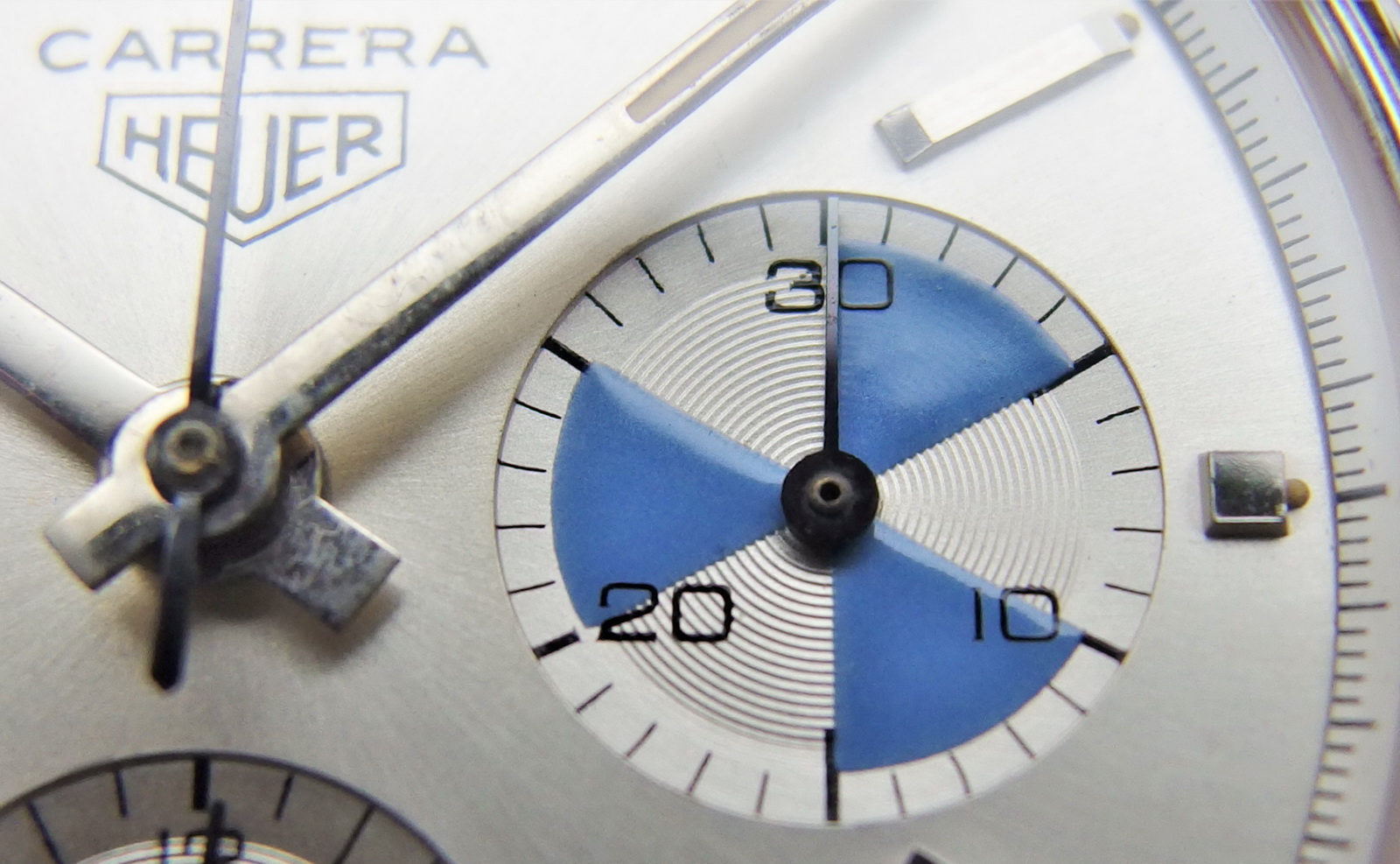 Why It’s a Grail. The first execution of the three register Carreras are considered one of the purest examples of chronograph design. The dial has no scales or extra markings, the minutes (and one fifth seconds) are marked only on the inner tension ring, and the hands and markers on the dial are simple and thin. The first Reference 2447 Carrera were offered with black or white dials, but there was a unique model, available only by special order, for the yachting crowd. This model featured alternating blue and white segments on the minute recorder, with each segment marking five minutes. The yacht racer would use these five minute segments to count down to the start of a race.