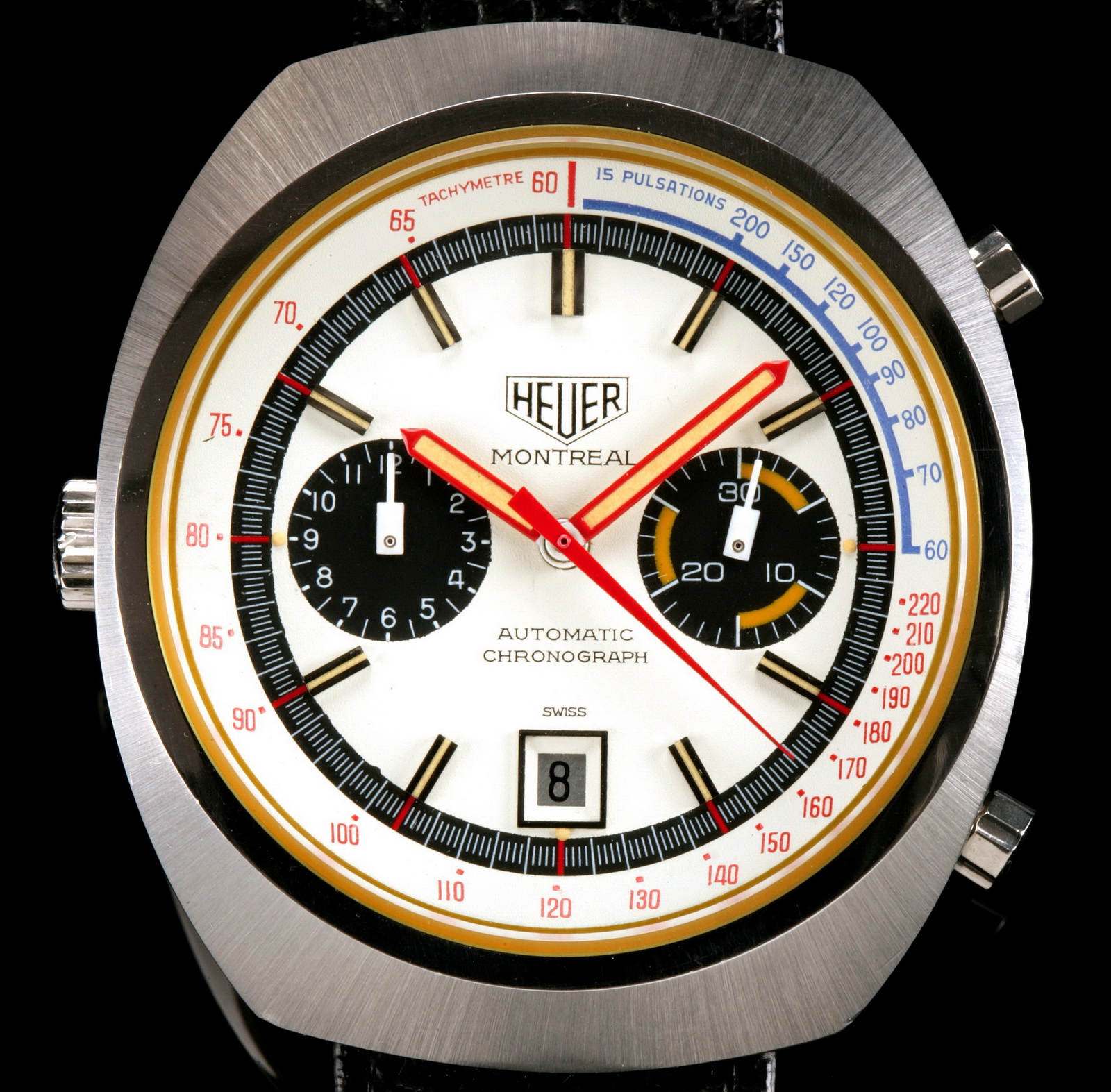 The Next Best Thing. One thing for sure — there is no other Autavia that will give you the vibe of the Exotic, Reference 1563. It this is the look you are after, but have grown weary of the search, have a look at some of the other models that Heuer added to its catalog in this period. The Temporada, from 1971, offers funky-shaped registers, with some interesting dial colors, in a monocoque fiberglass case. For a different type of walk on the wild side, have a look at the Calibre 12 Montreals (introduced in 1972), which offer an outrageous lump of metal for the case and some bright colors for the dials and hands.