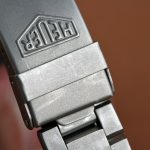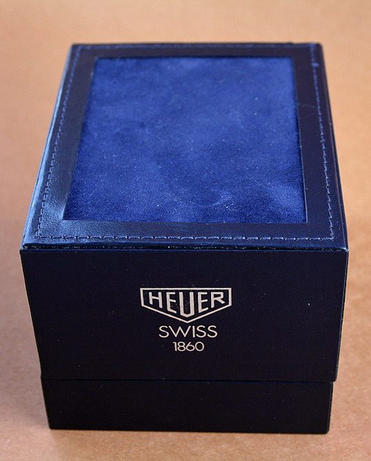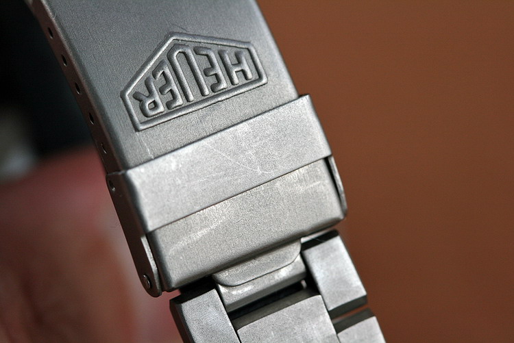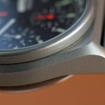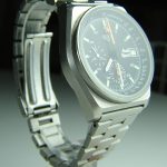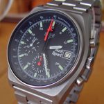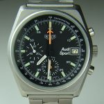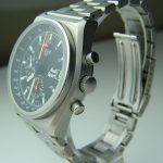 Black dial, with orange chronograph hands; painted luminous markers and small numerals
