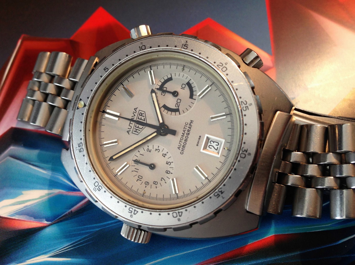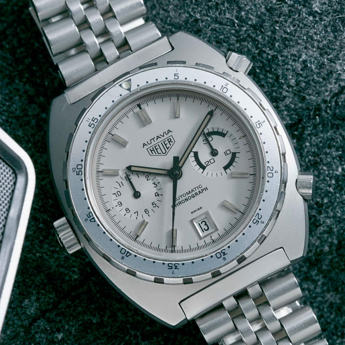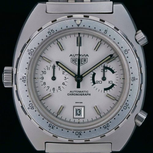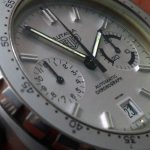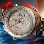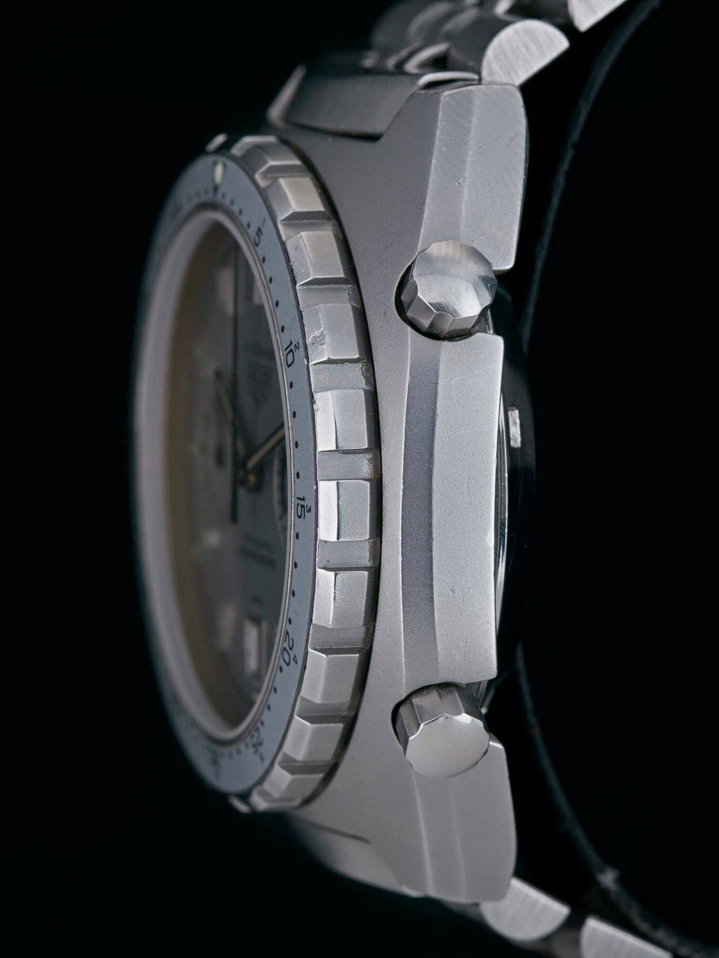Reference 112.603 has a gray coated case, with gray dial and registers; black hands (with luminous inserts) and black stripes on the minute recorder