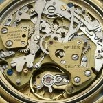 Reference 114.603 has gold-plated case, with gilt dial and registers; black hands (with luminous inserts) and black stripes on minute recorder