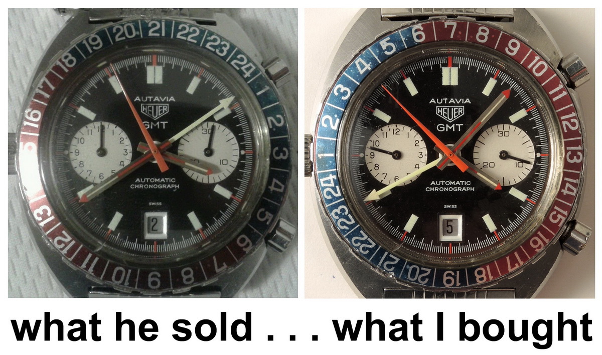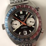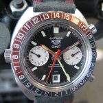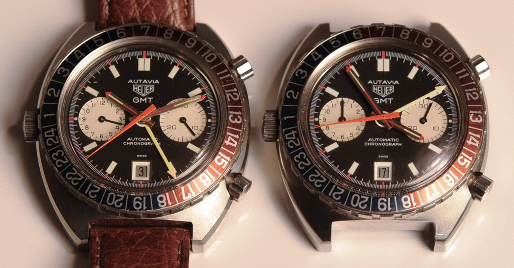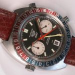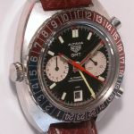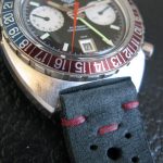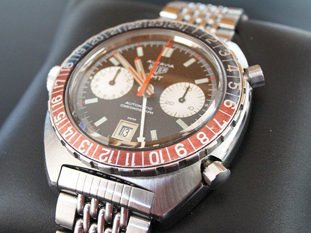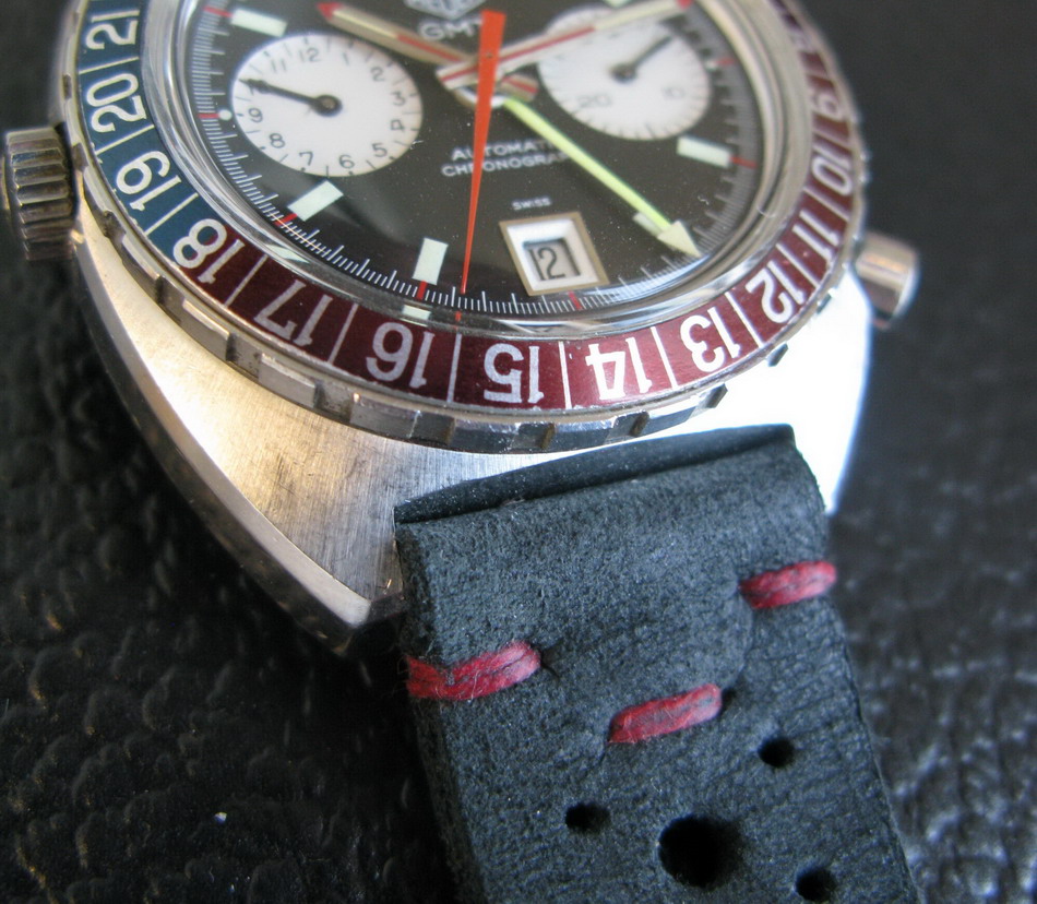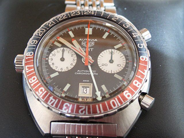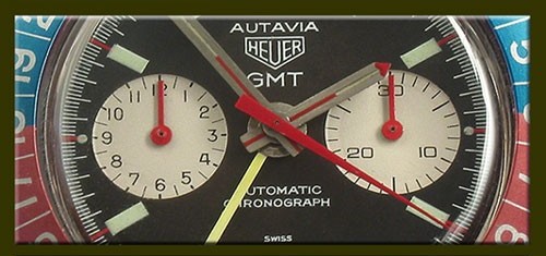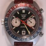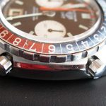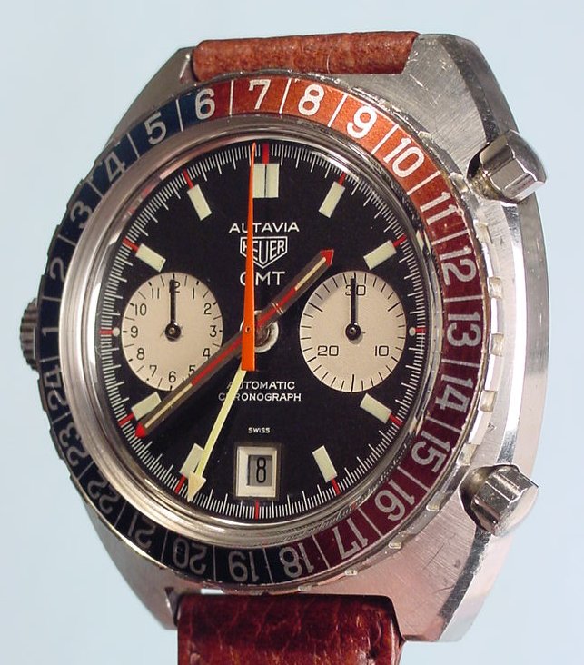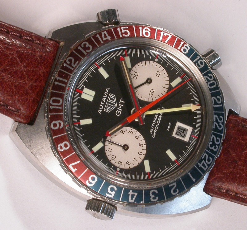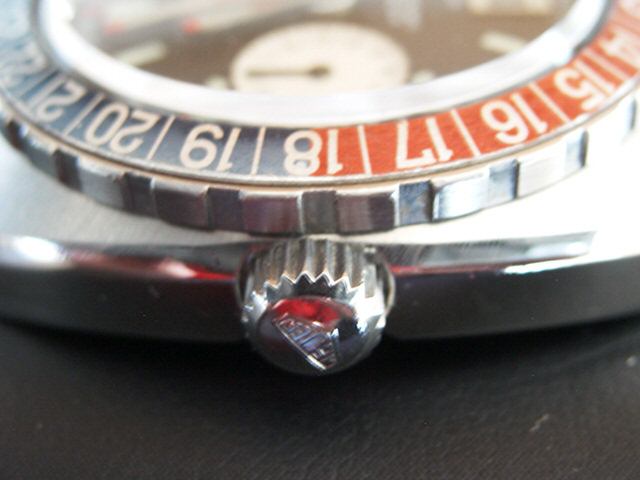 24 numbers on GMT bezel; brushed steel hands, with red and luminous inserts and red tips