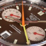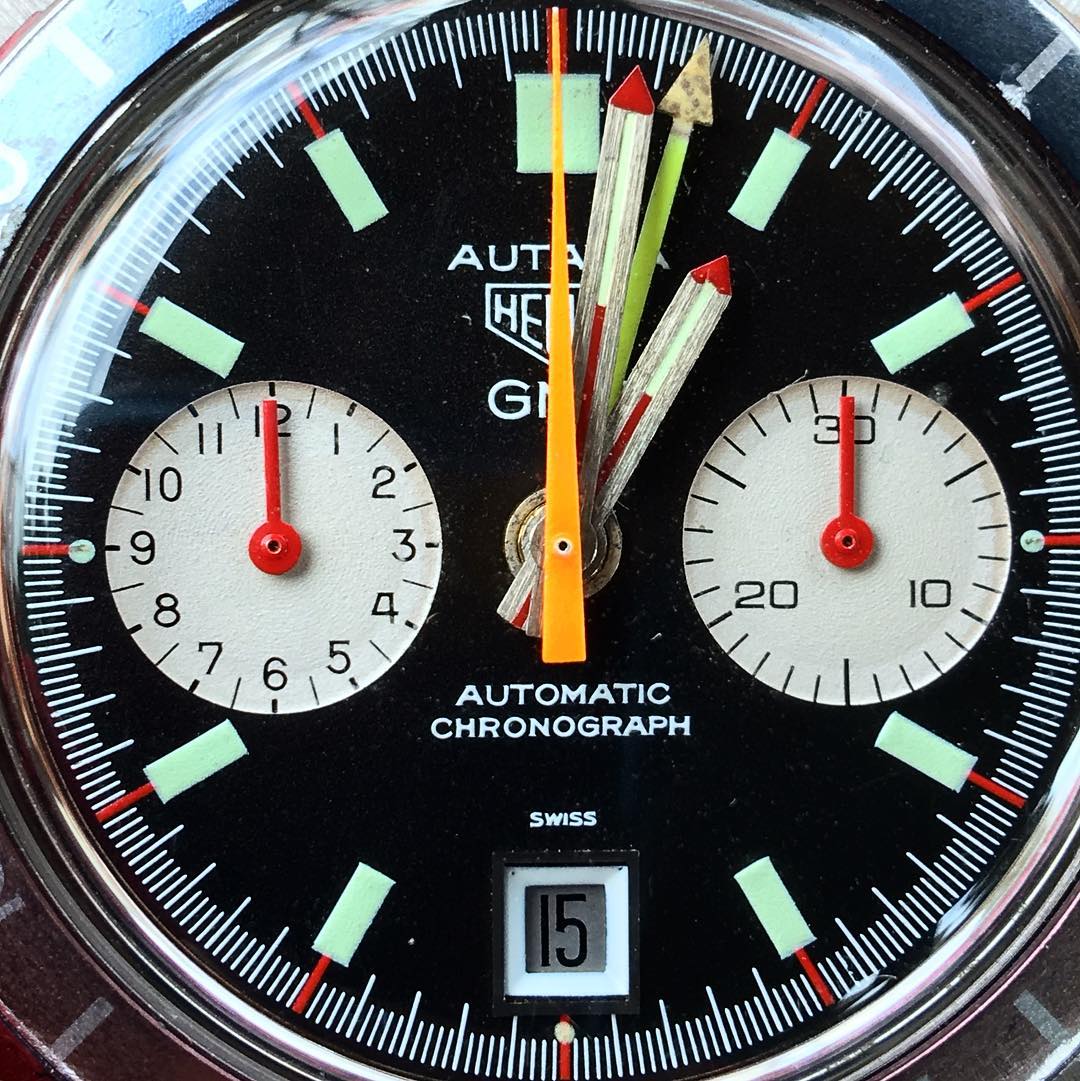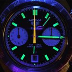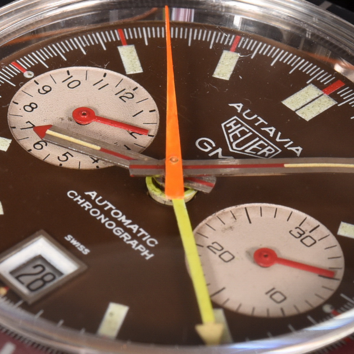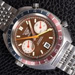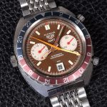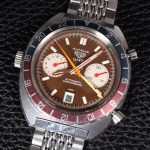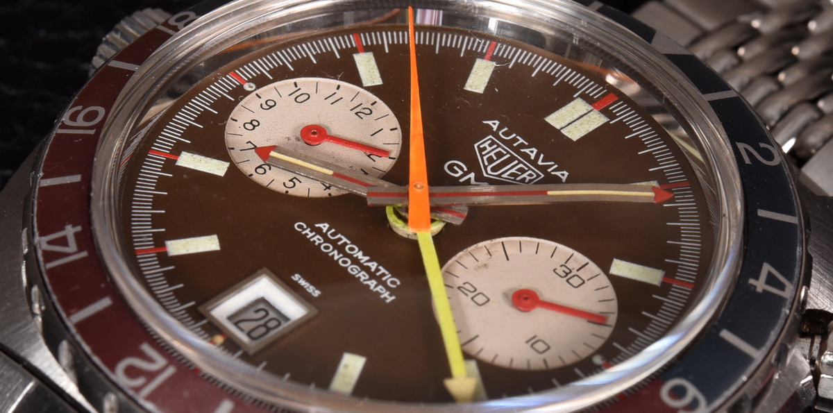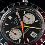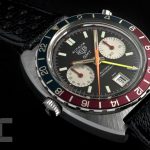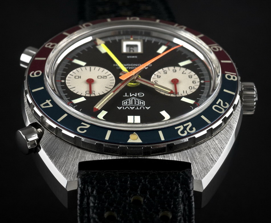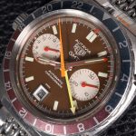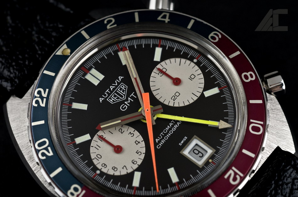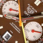 Even numbers on GMT bezel; brushed steel hands, with red and luminous inserts and red tips