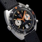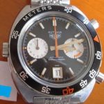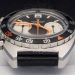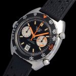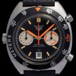 Painted lume markers; Stripe on minute recorder; Orange-edged hands