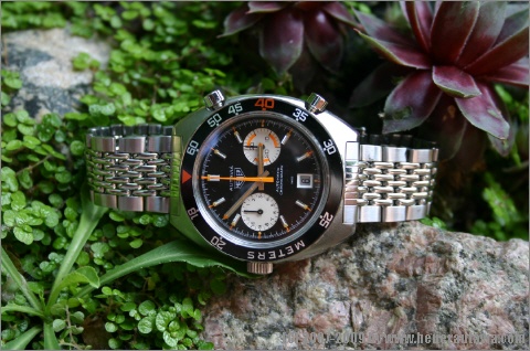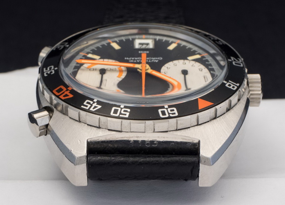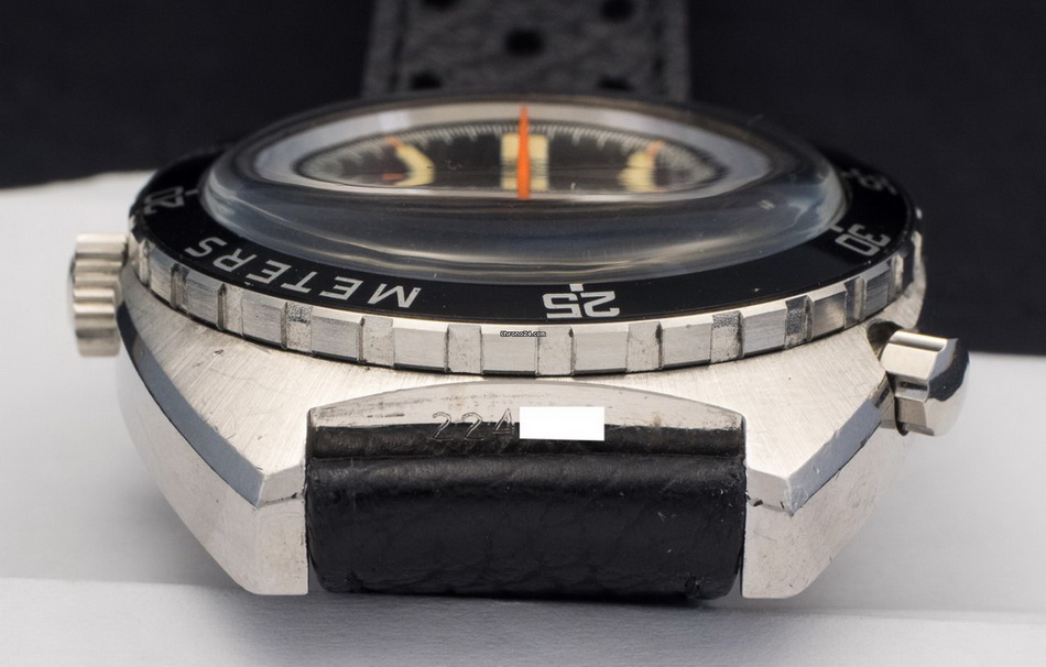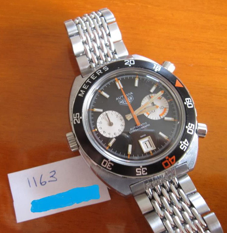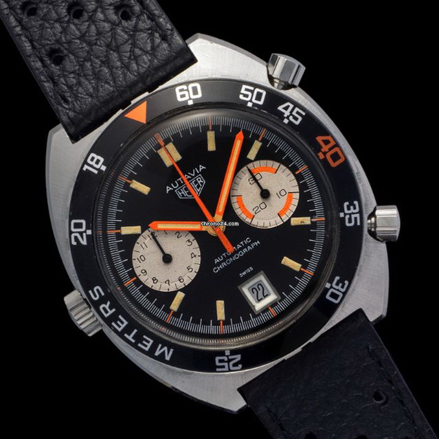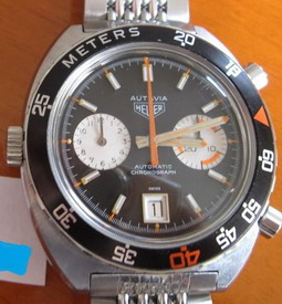 By aligning the orange arrow on the bezel with the minute hand, the diver can see the amount of time that he / she may stay at a particular depth, without requiring decompression.  For example, at 60 meters depth, the diver would have only 5 minutes, but at 50 meters, that is extended to 9 minutes, and at 40 meters, to 15 minutes, etc.  See the Heuerville posting, Heuer Autavia 11630P Diver Decomp Tropic.