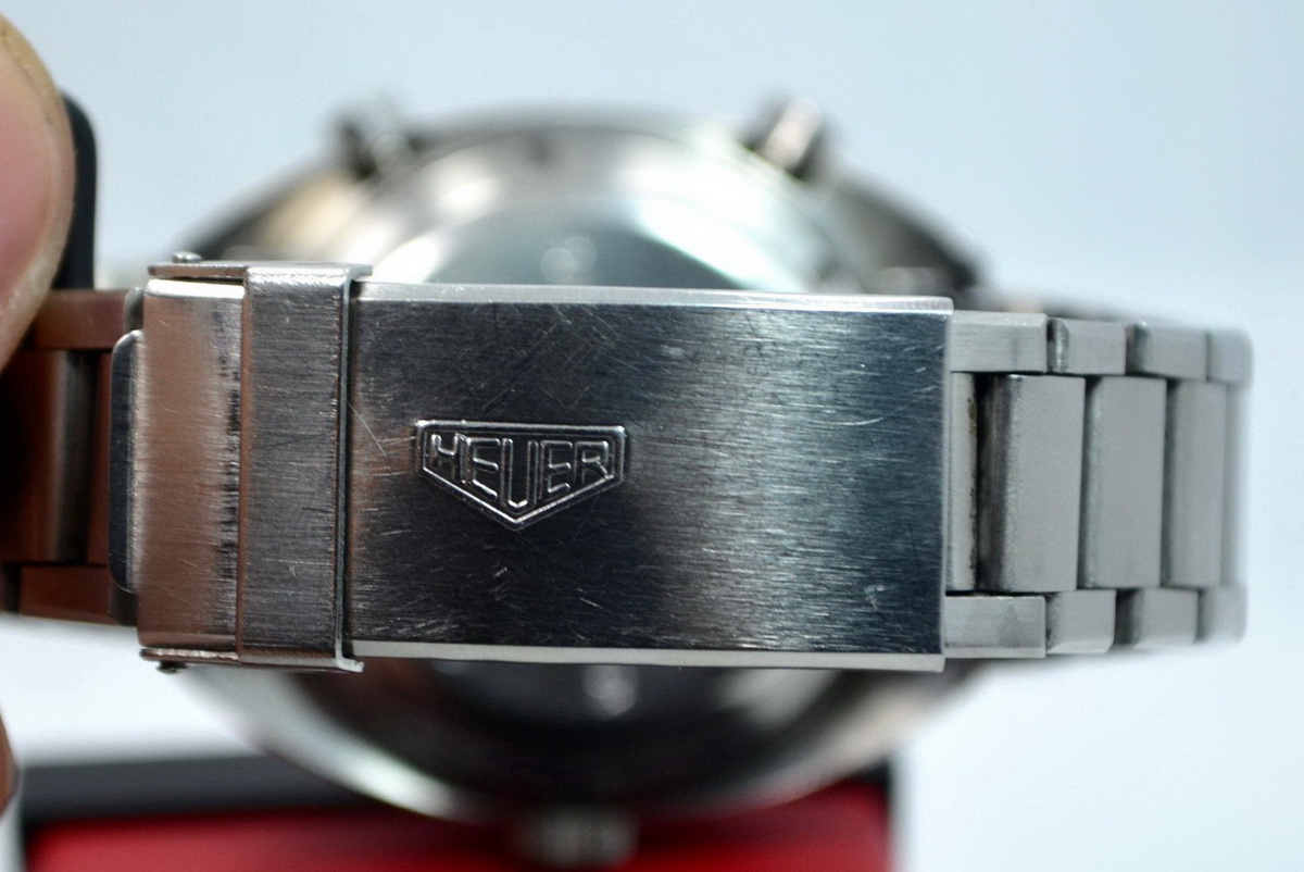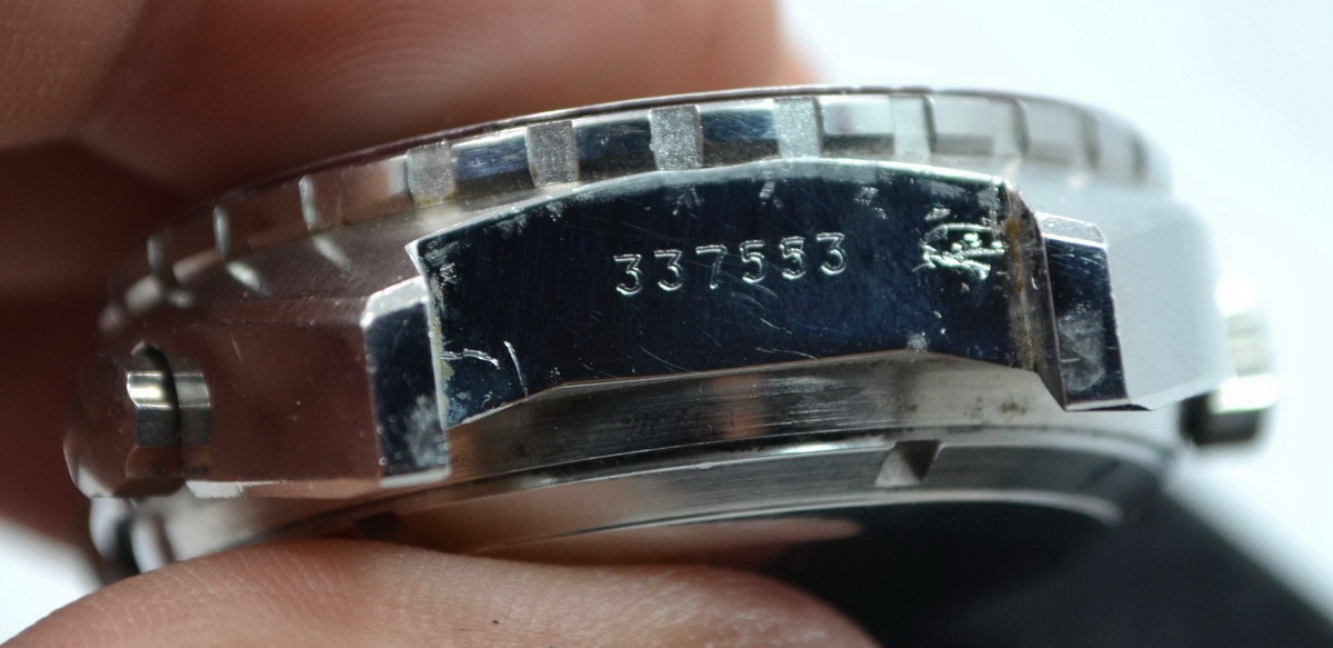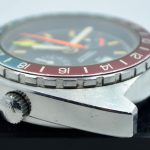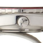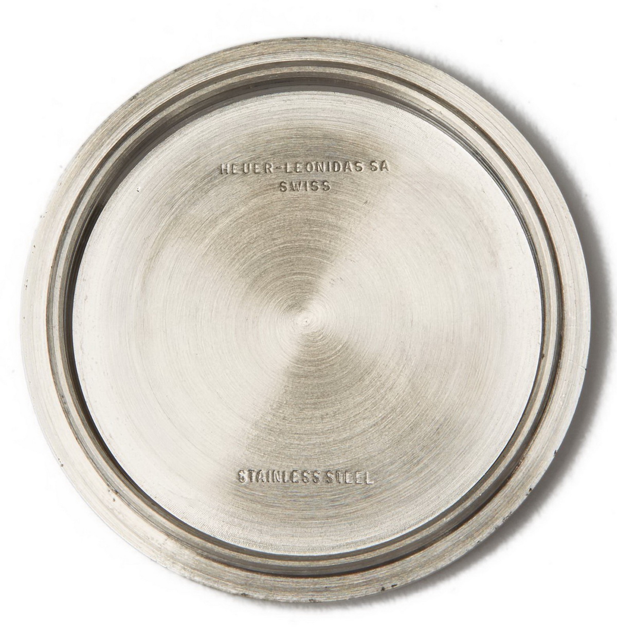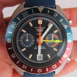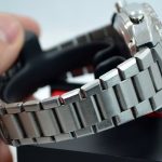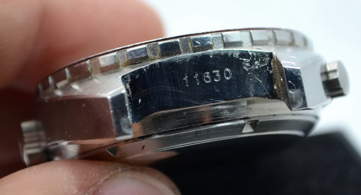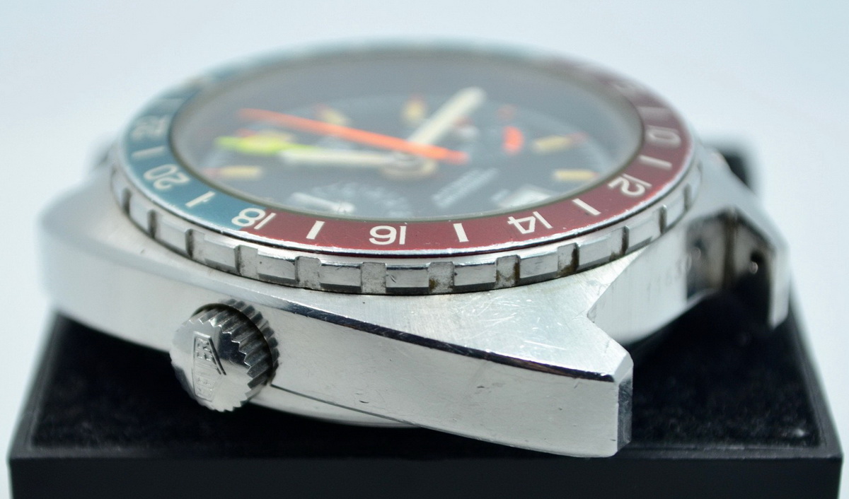 Charcoal registers, with orange stripes on minute recorder; Hands have white edges and full luminous inserts