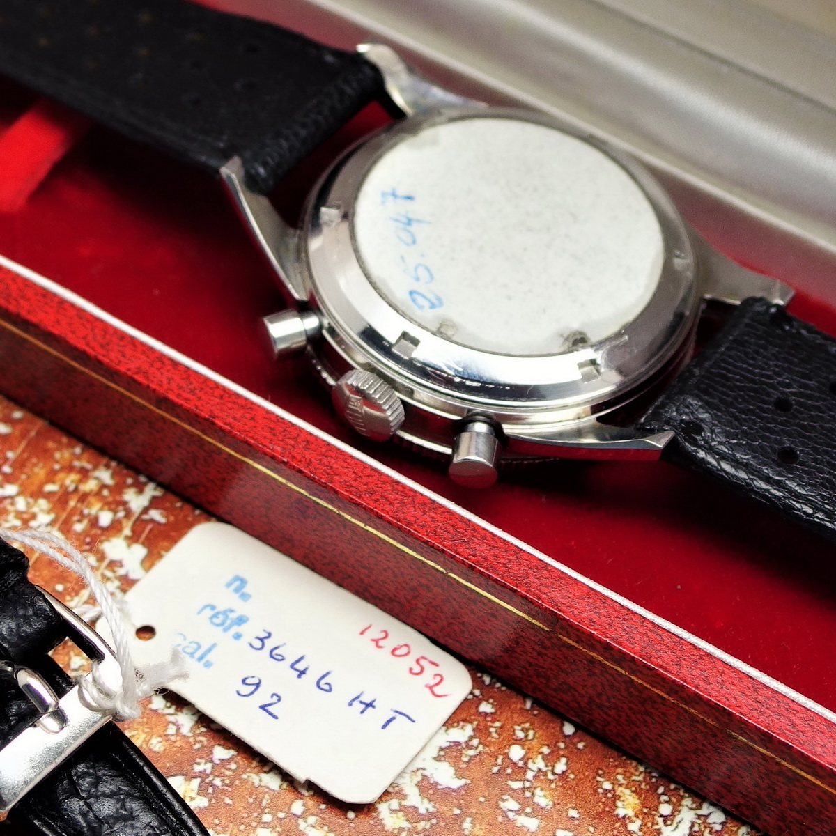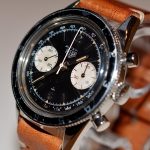 This special model has a Tachymeter scale printed on the dial, covering 50 to 200 unites per hour