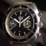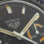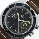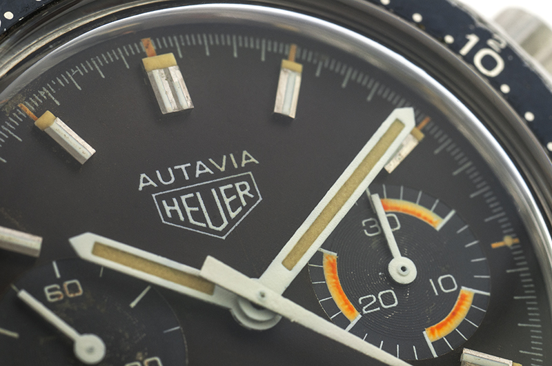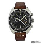 Autavia 73363 -- Military Style has black dial with black registers and orange accents; applied markers, with white inserts; white hands
