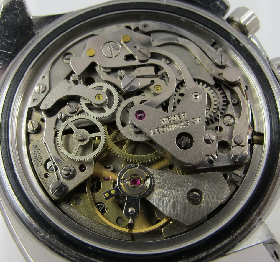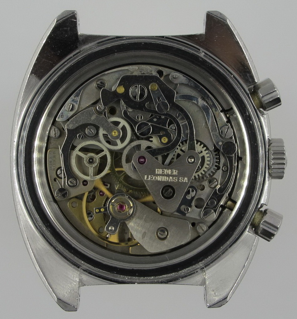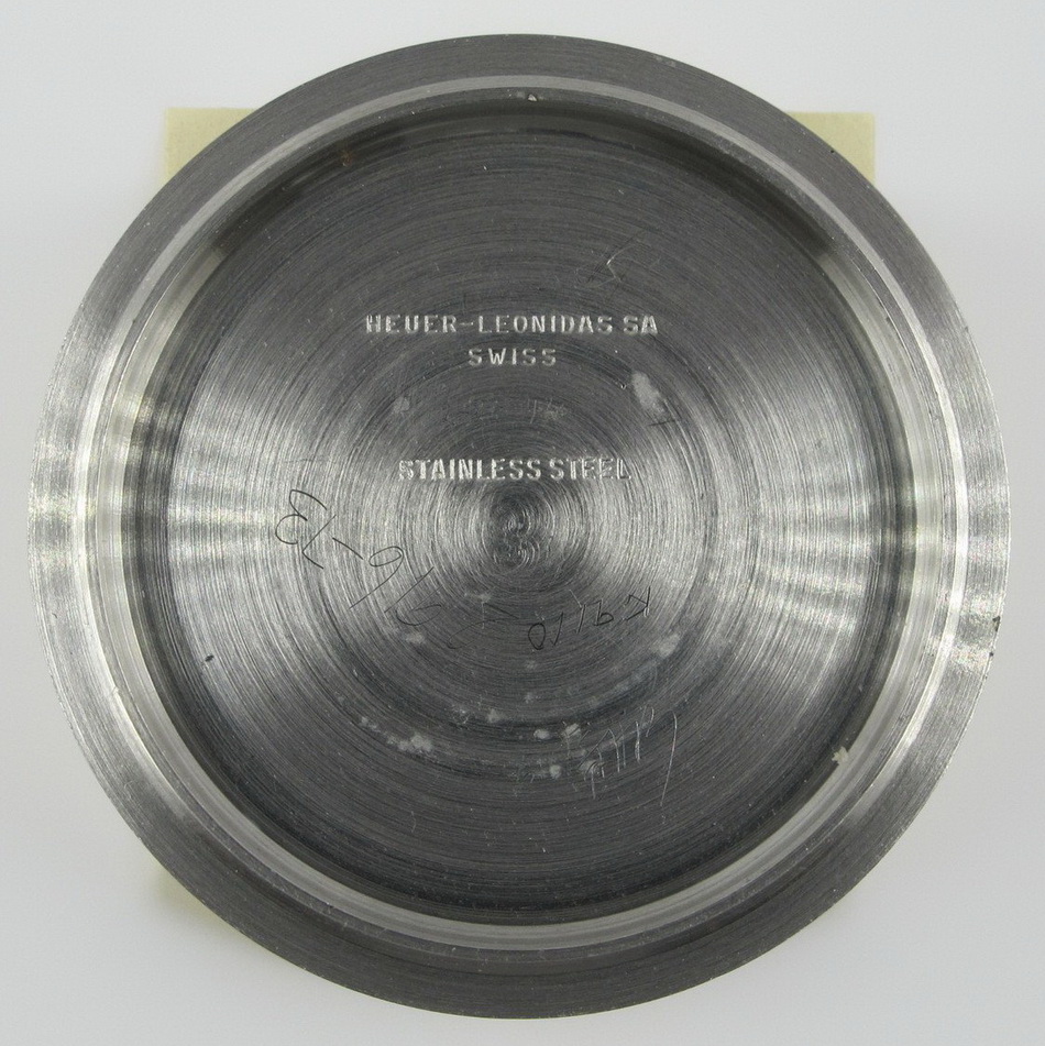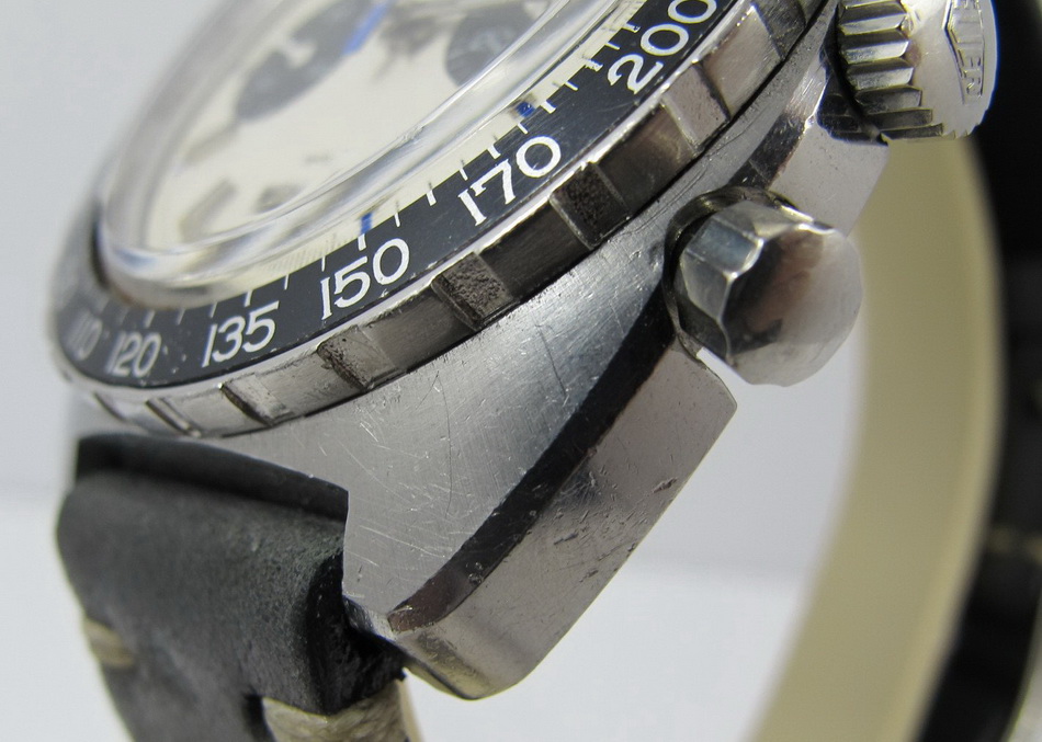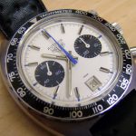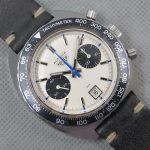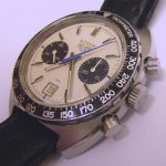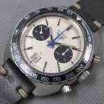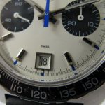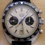 Autavia 73363 -- "Siffert" Colors has white dial with black registers and blue accents; applied markers, with black inserts; polished steel hands, with luminous and black inserts