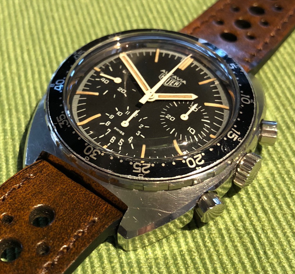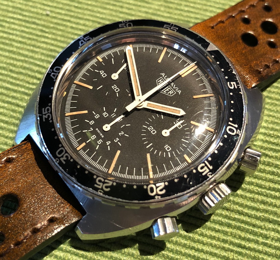 Autavia 73663 -- Military, Lume Markers has black dial with black registers; painted luminous markers; white hands with luminous inserts
