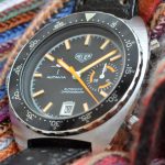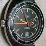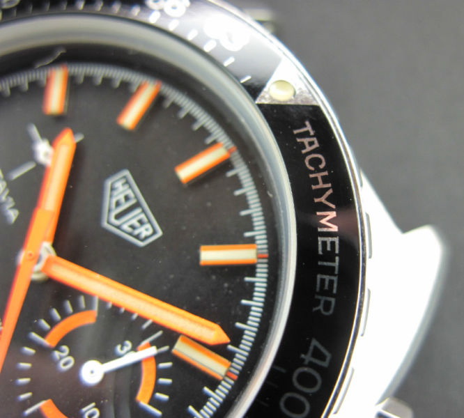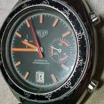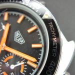 Reference 15630 MH has a black dial with black minute recorder; orange accents; T bezel