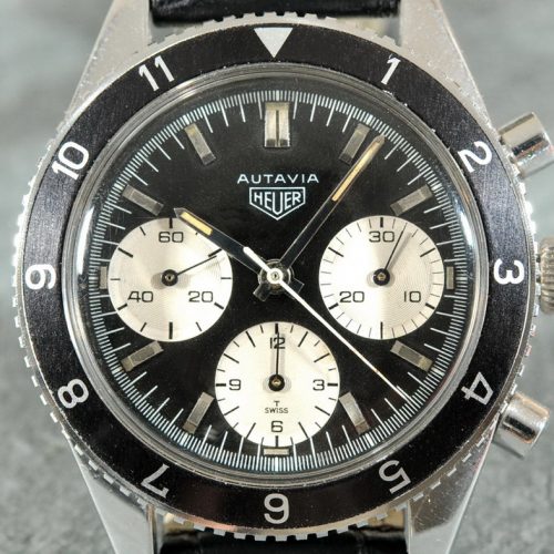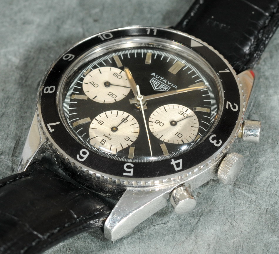 Transitional case (between first and second execution screw-back cases), is missing the bevel / chamfer between top and side surfaces; third execution dial (smaller registers, with applied steel markers)