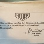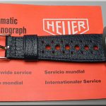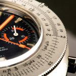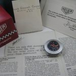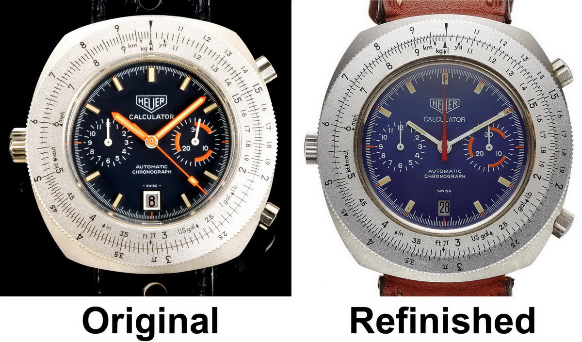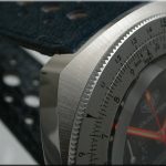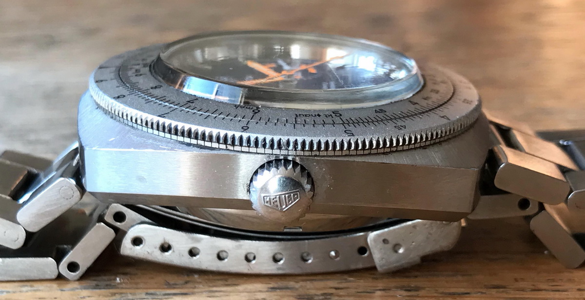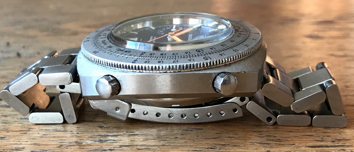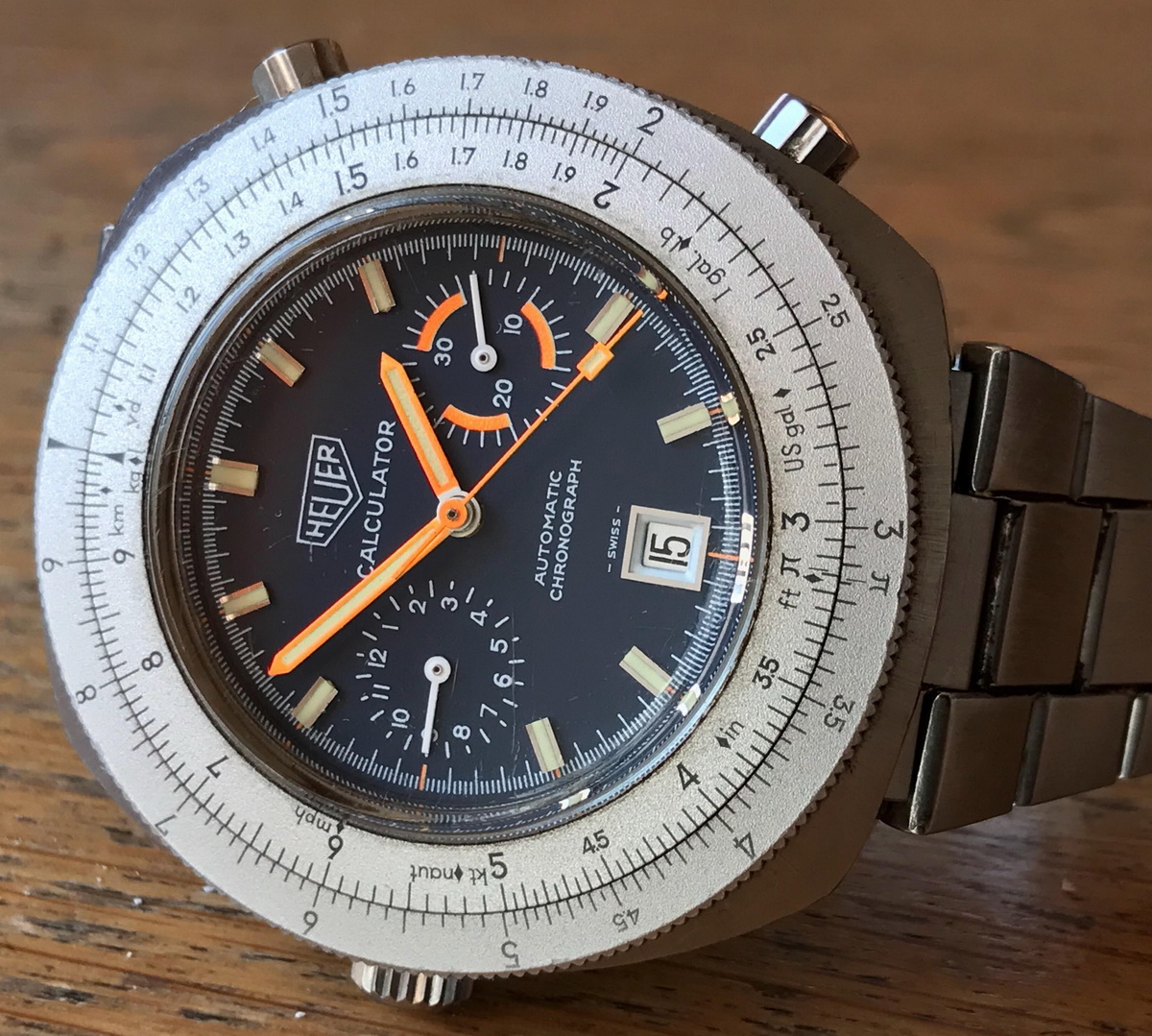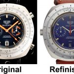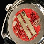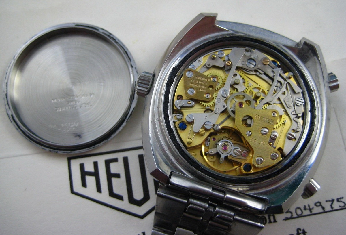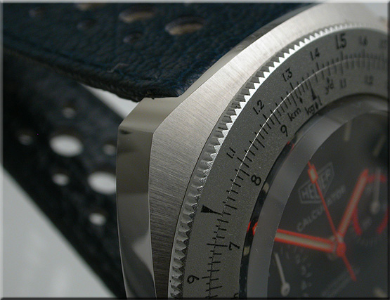 Reference 110.633 is a two-register, automatic chronograph (12 hour capacity) with a deep blue dial and orange hands and accents