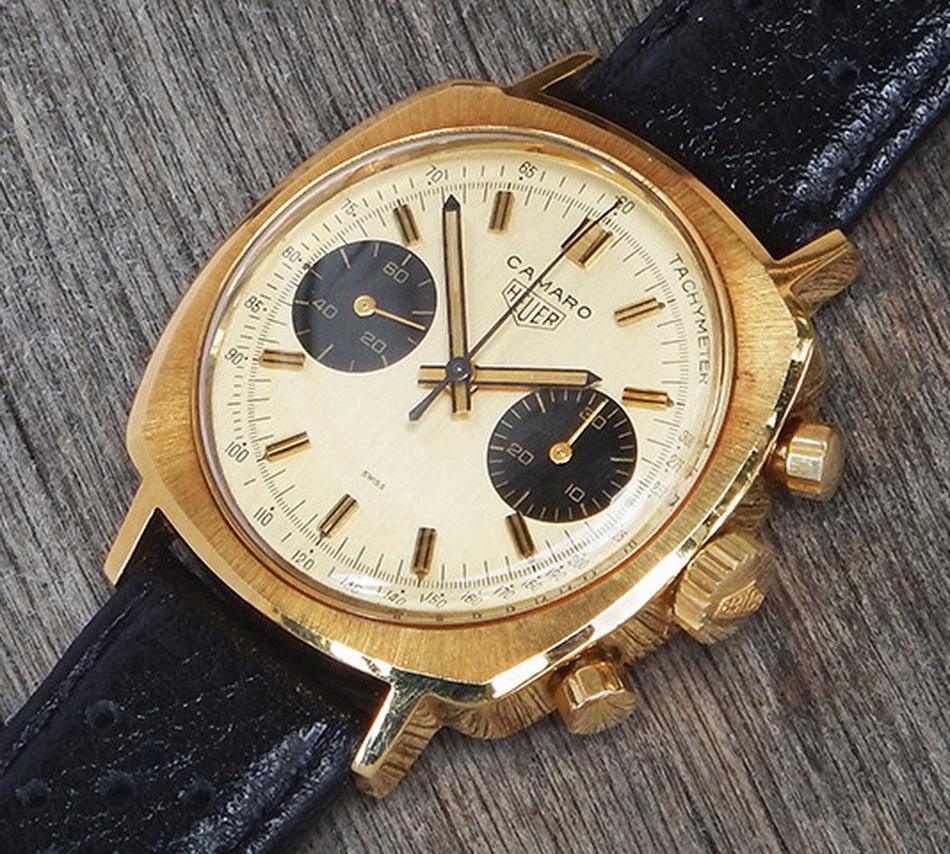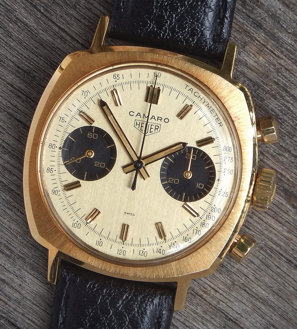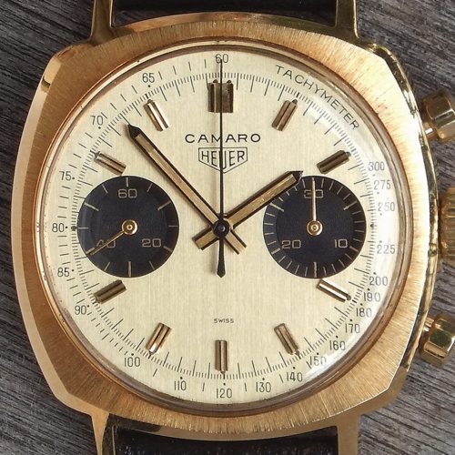 Camaro Reference 73345 CHT has a champagne dial and black registers, with Tachymeter scale