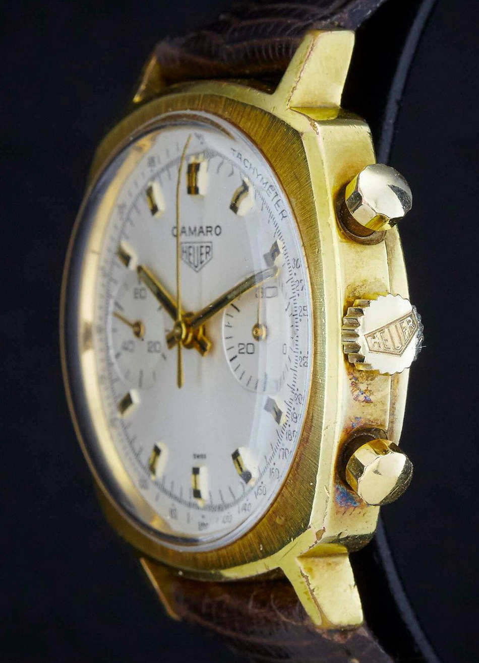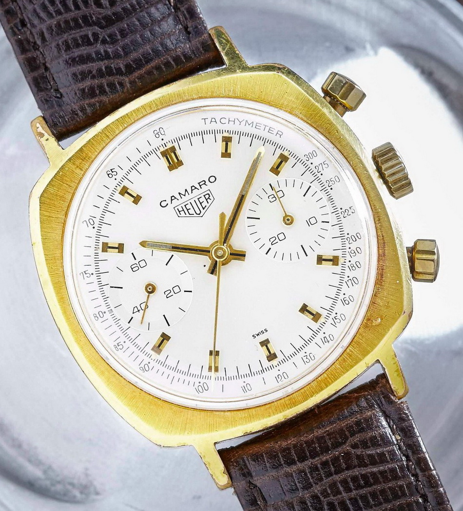 Camaro Reference 73345 T has a white dial and registers, with Tachymeter scale