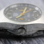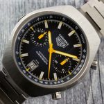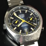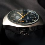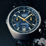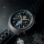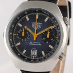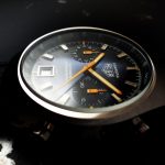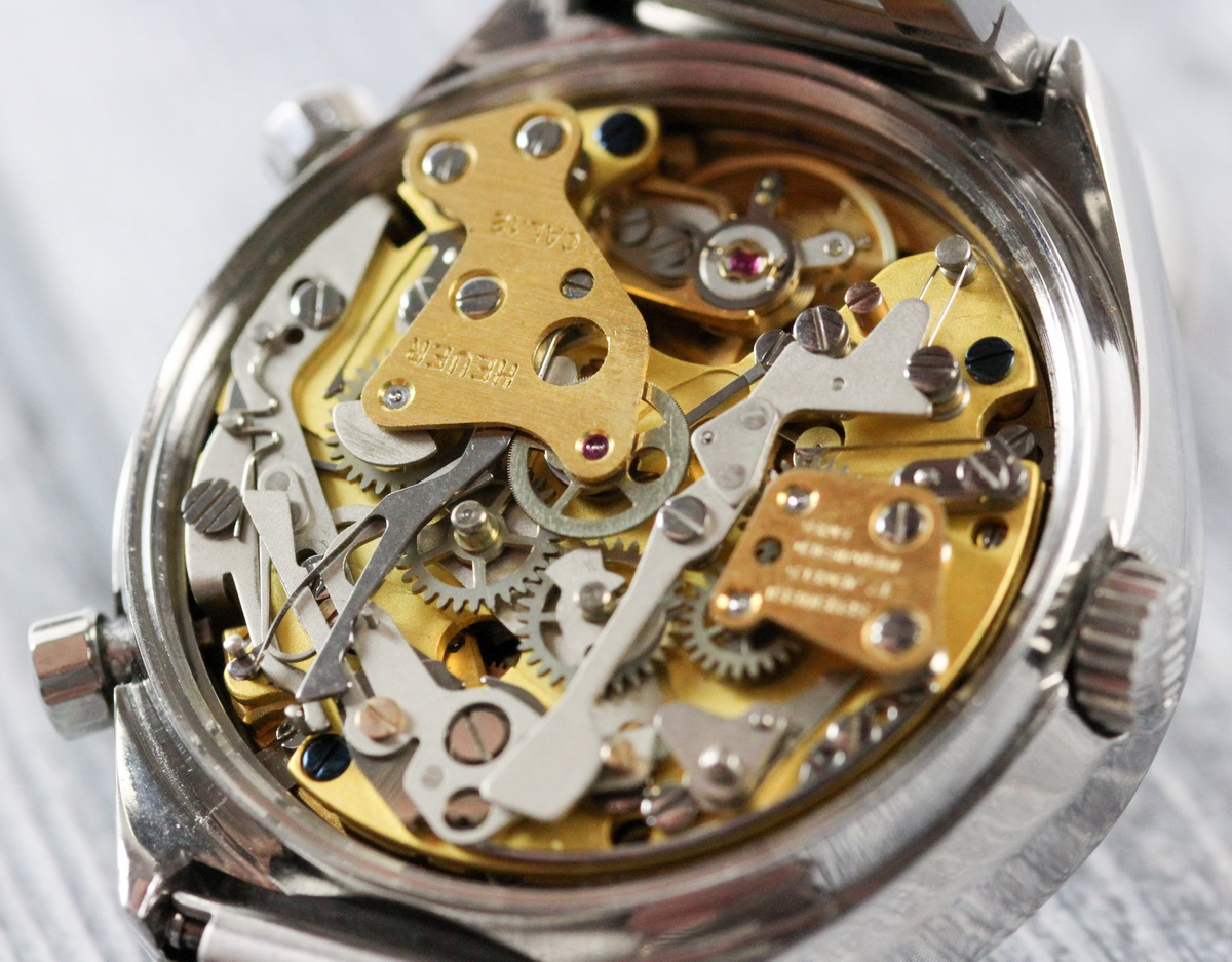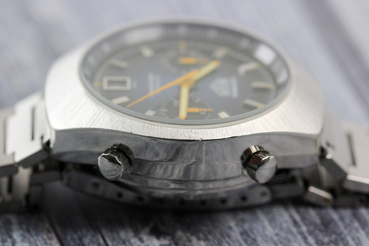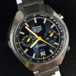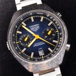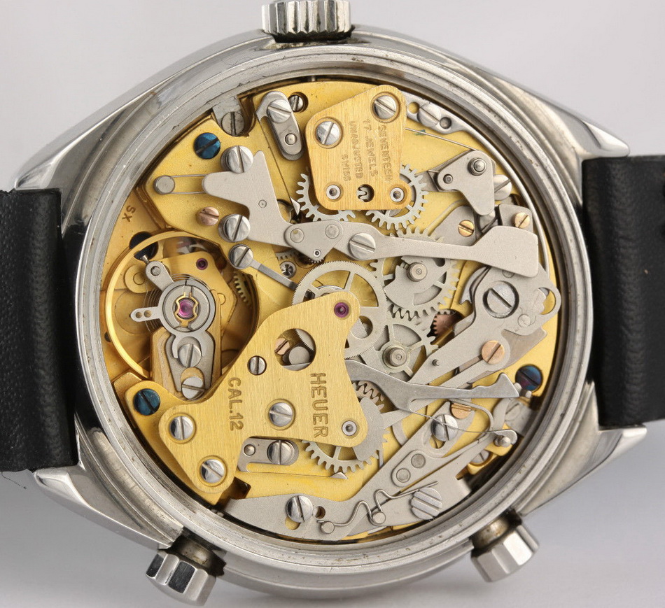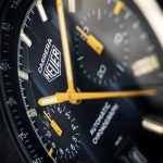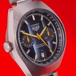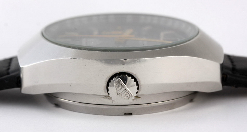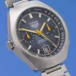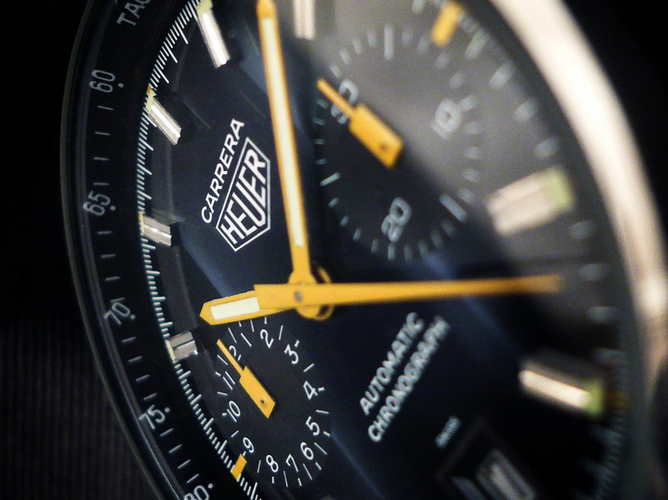Reference 110.573B Carrera has blue dial with luminous metallic finish (Cotes de Geneve), orange edged hands and orange chronograph needles, 12 hour capacity