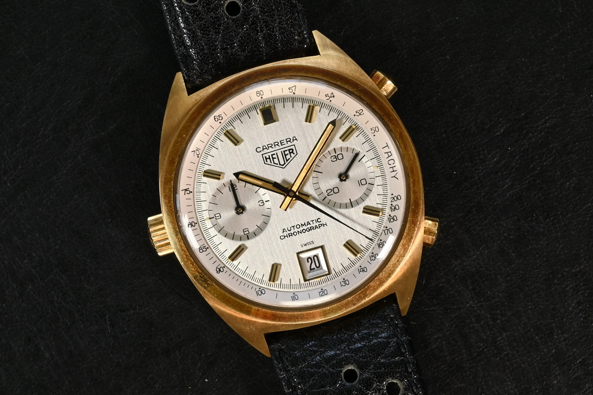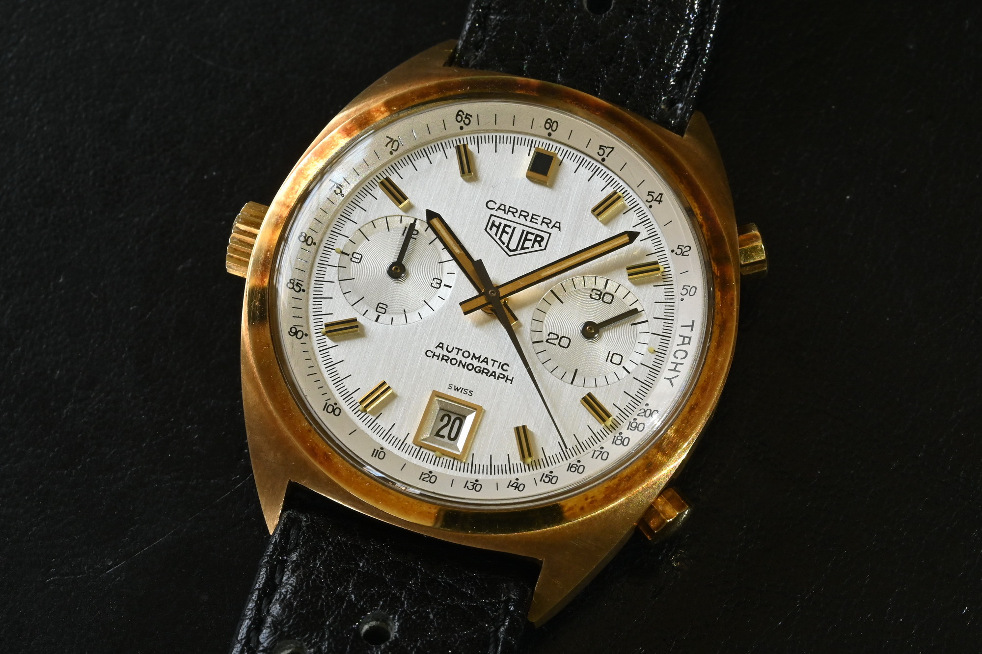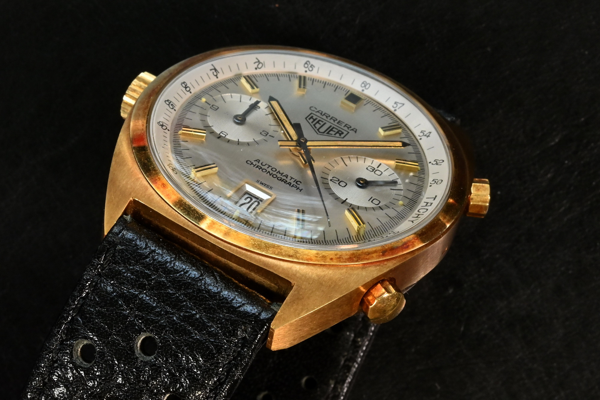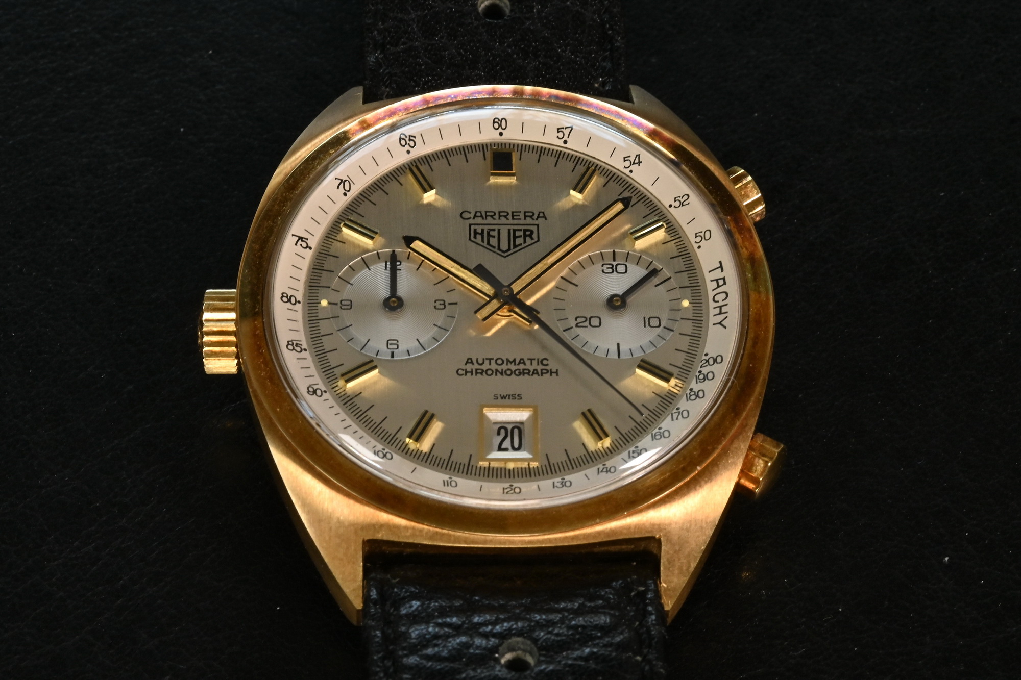 Mark 3 Carrera 1158 S has second execution dial (brushed gold applied markers and numerals 3-6-9-12 on the hour recorder) and brushed gold hands with black edges and luminous inserts