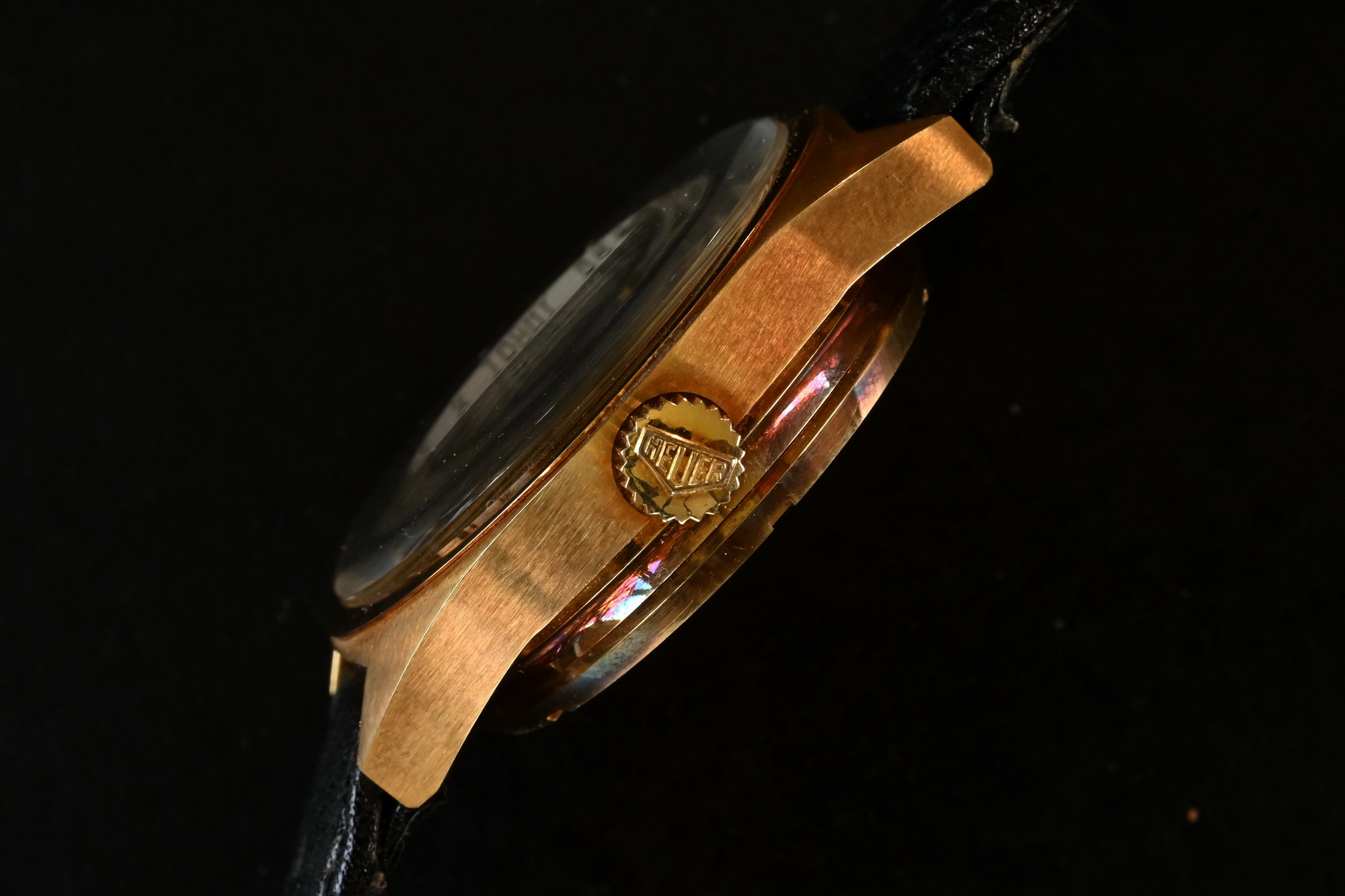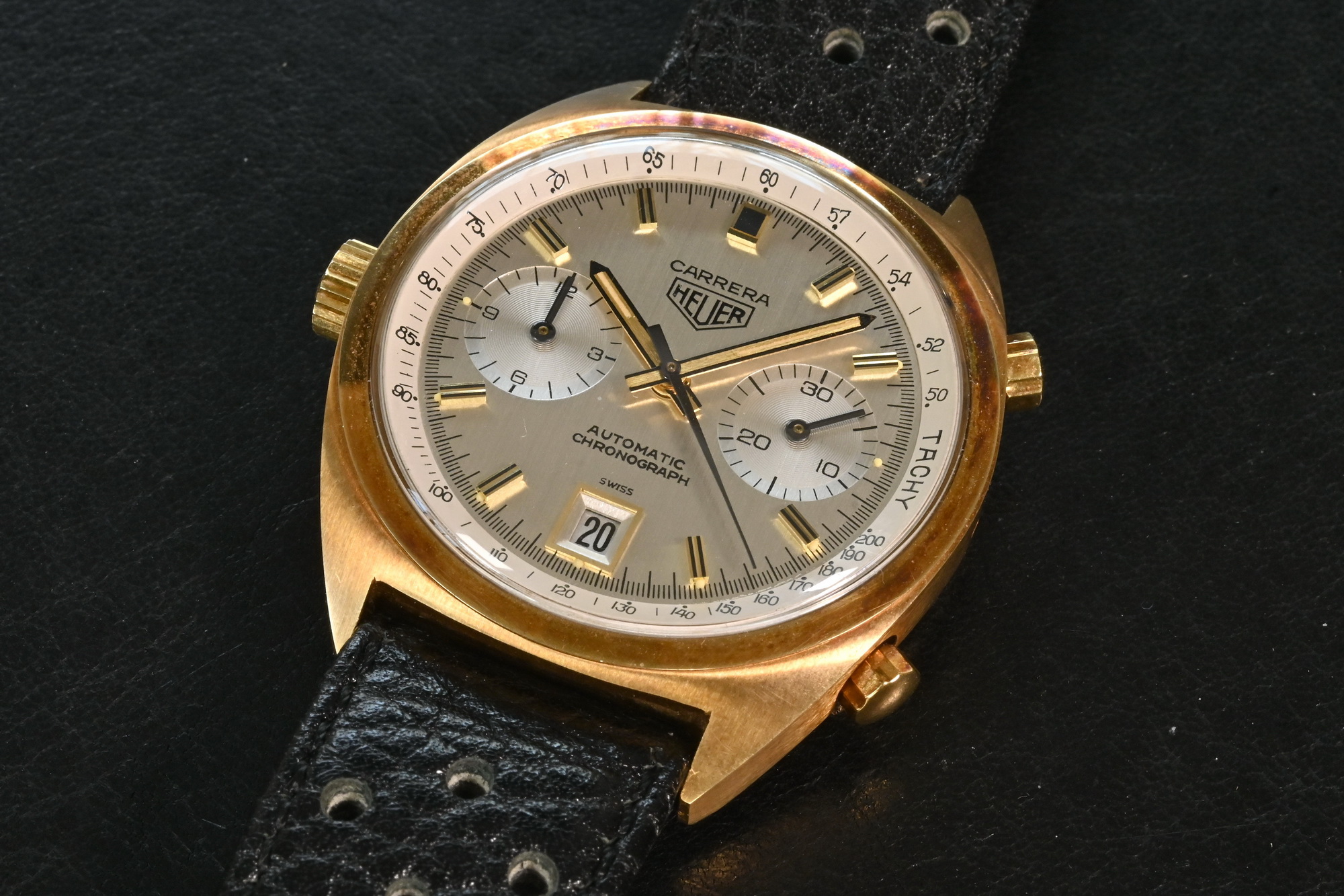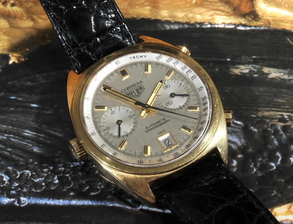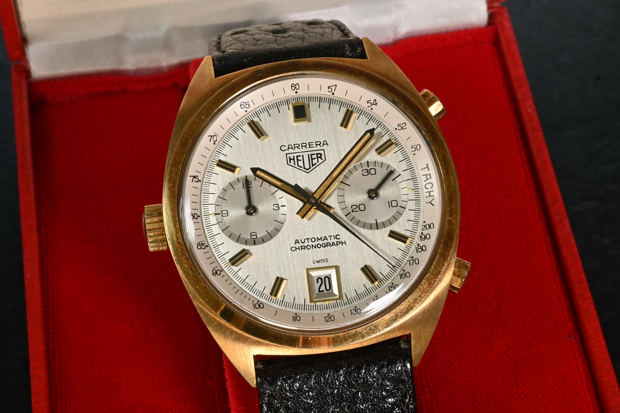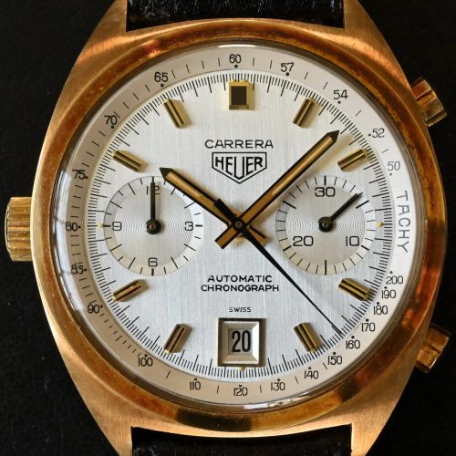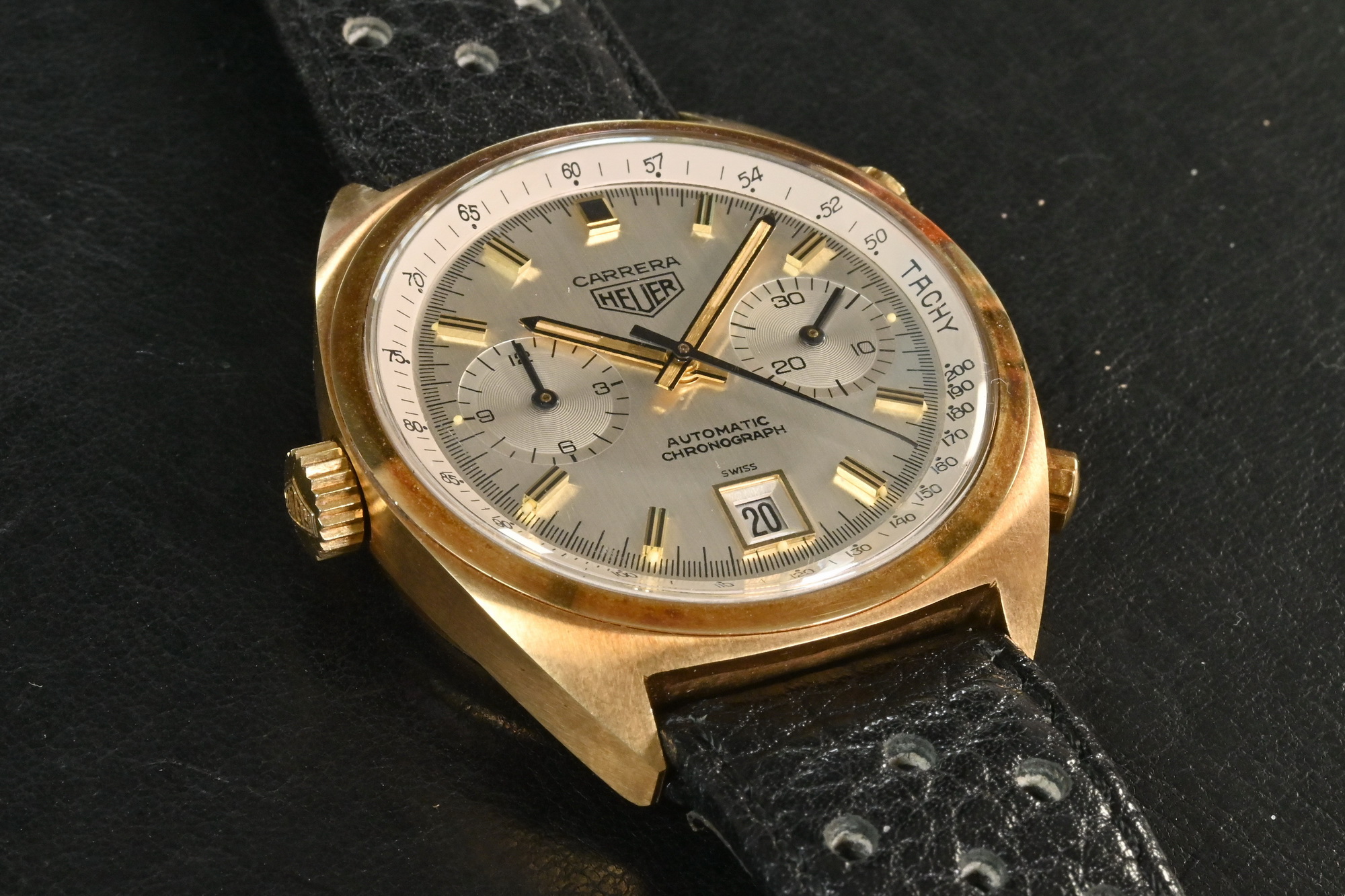 Mark 3 Carrera 1158 S has second execution dial (brushed gold applied markers and numerals 3-6-9-12 on the hour recorder) and brushed gold hands with black edges and luminous inserts
