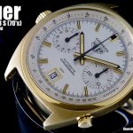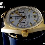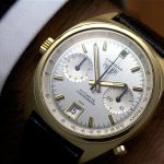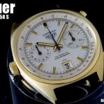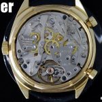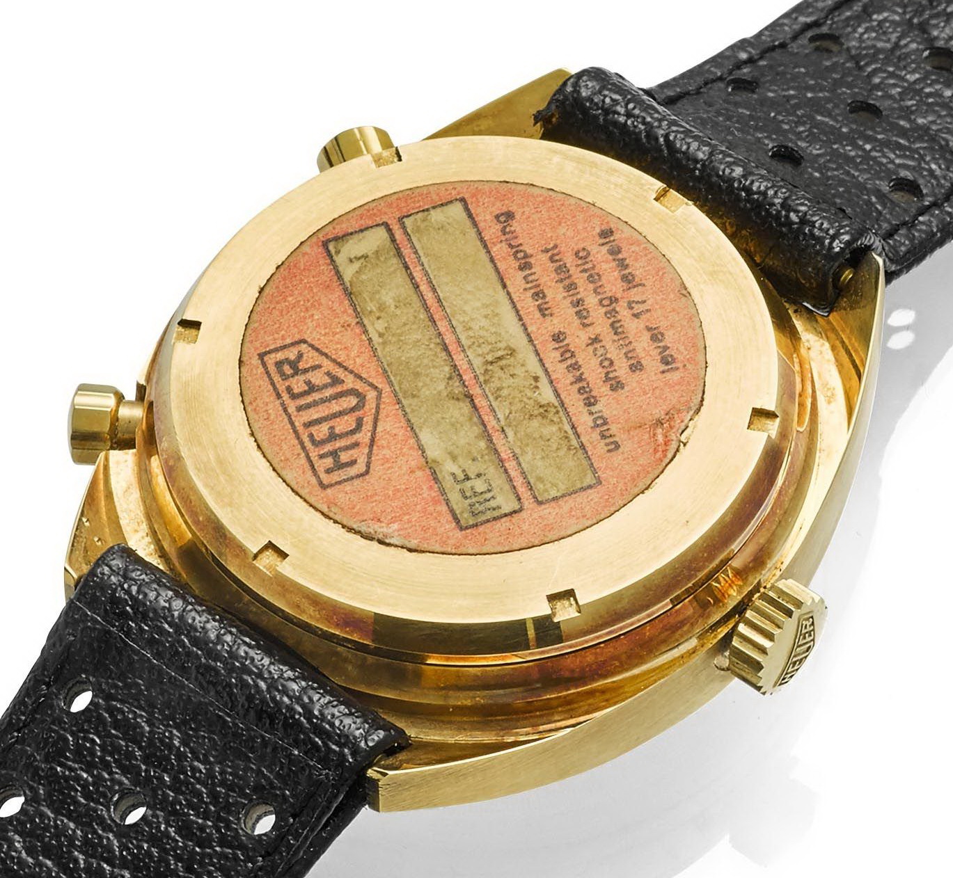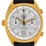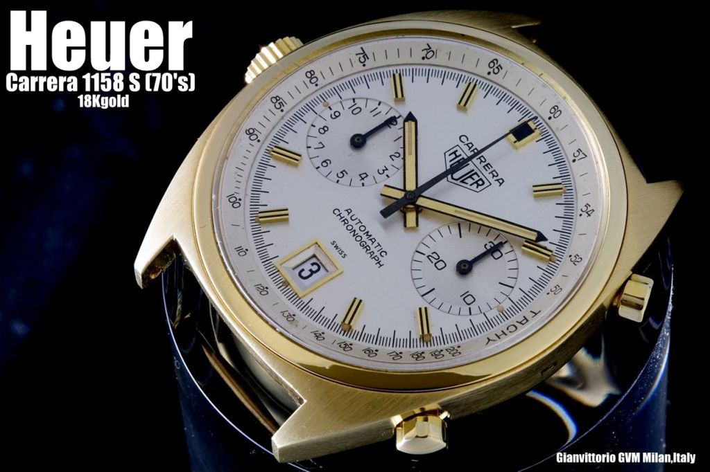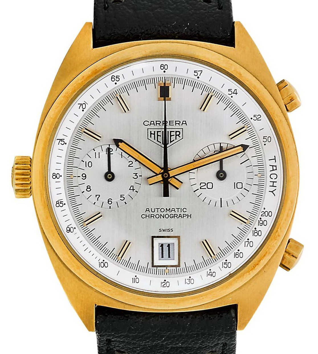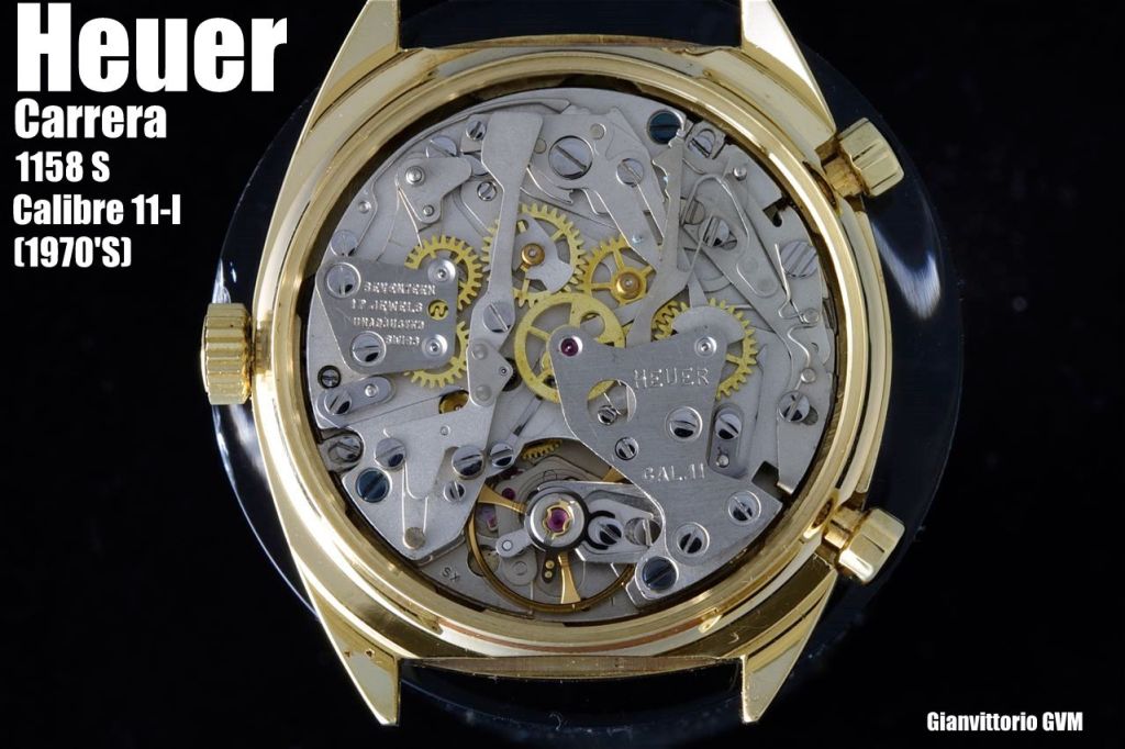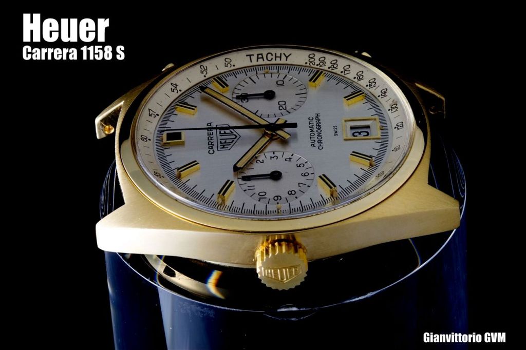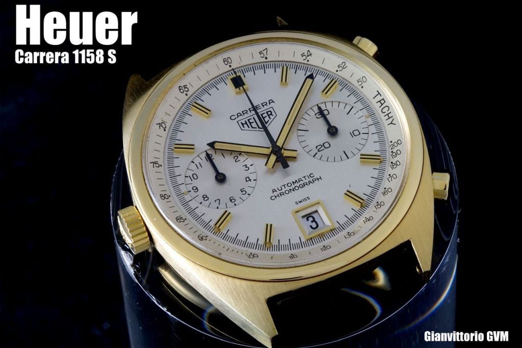 Mark 4 Carrera 1158 S dial has brushed gold applied markers (with numerals 1 through 12 on the hour recorder) and brushed gold hands with black edges and luminous inserts