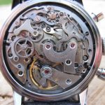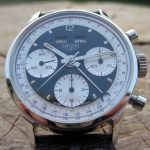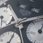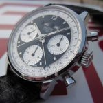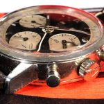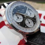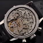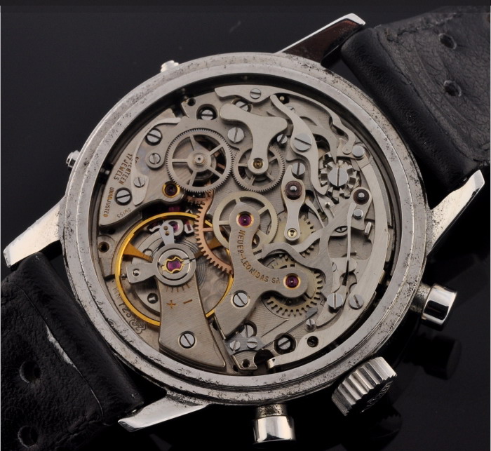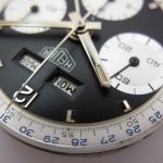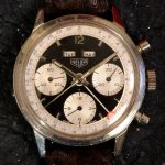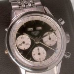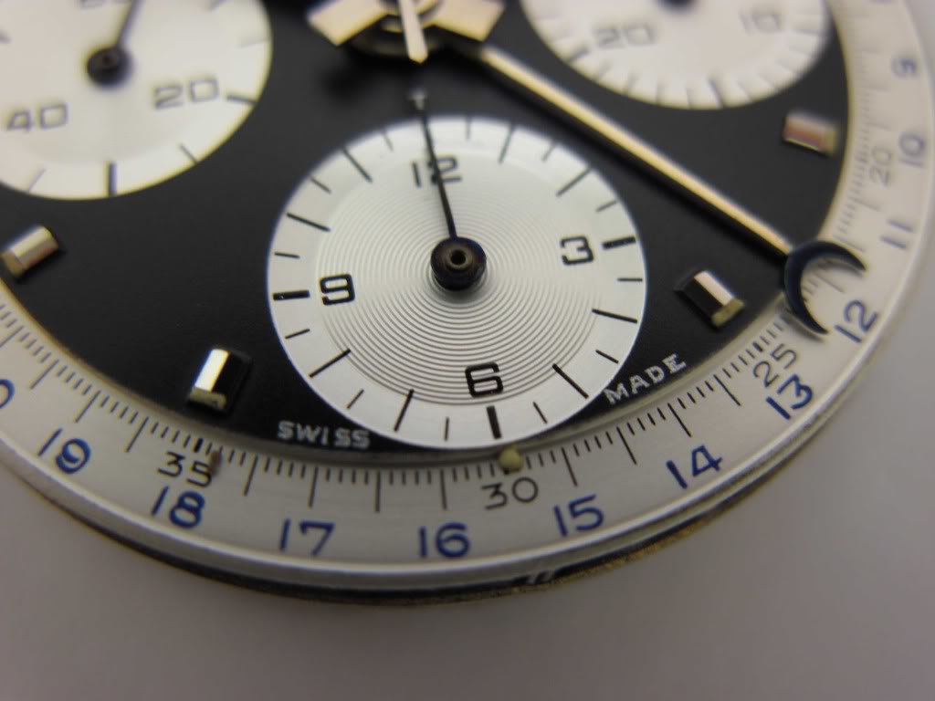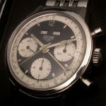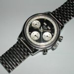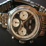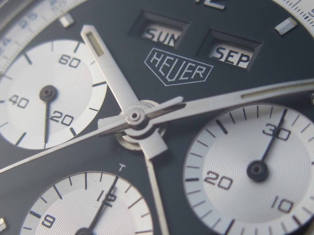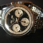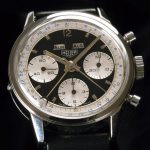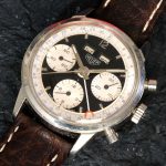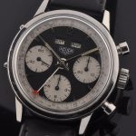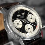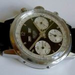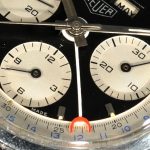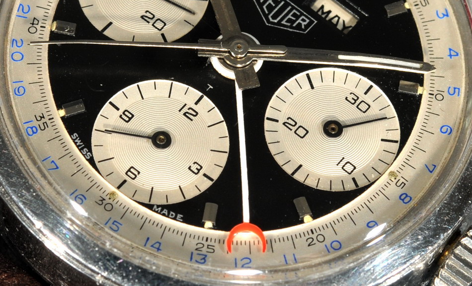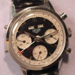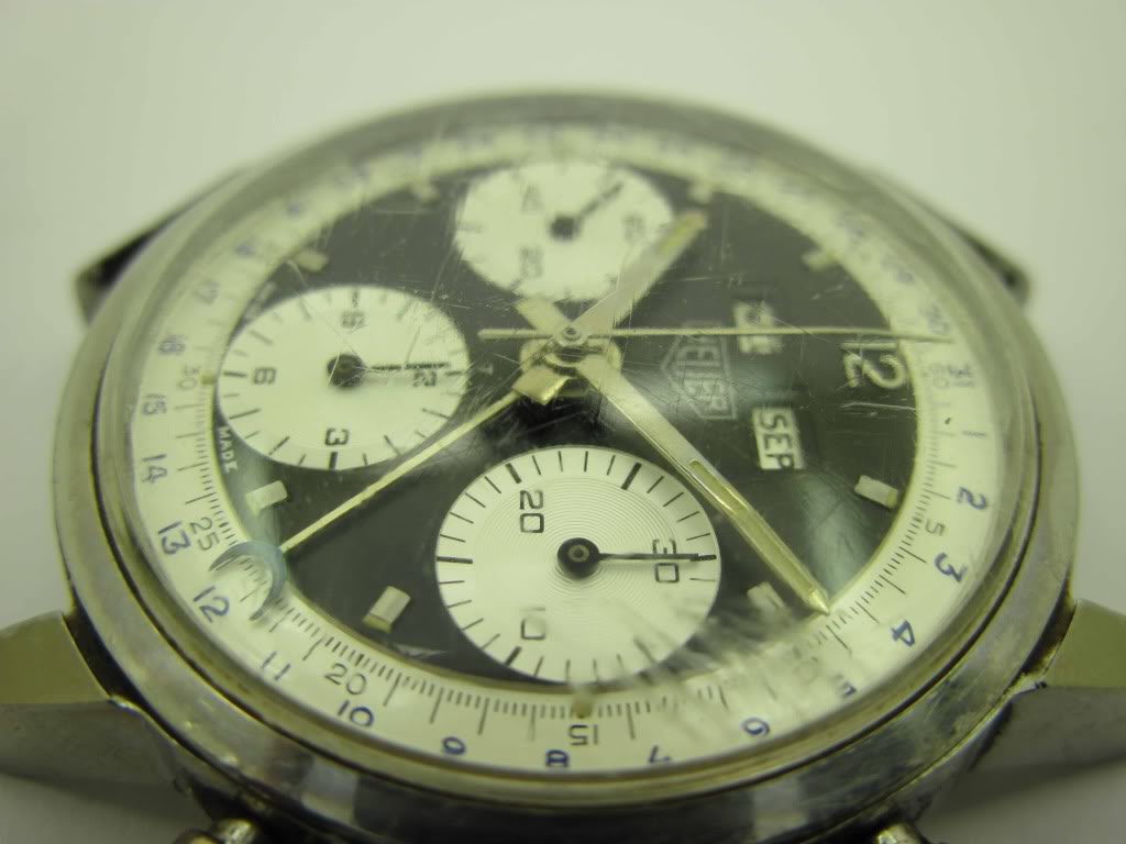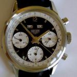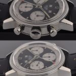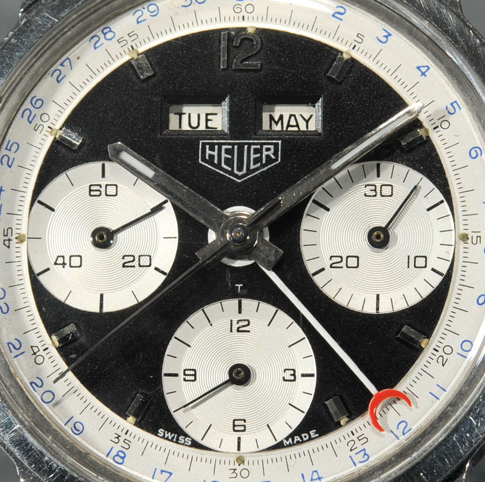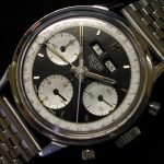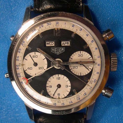 Carrera 12 Dato (Reference 2547) N has narrow lugs; black dial with white registers; monocoque case
