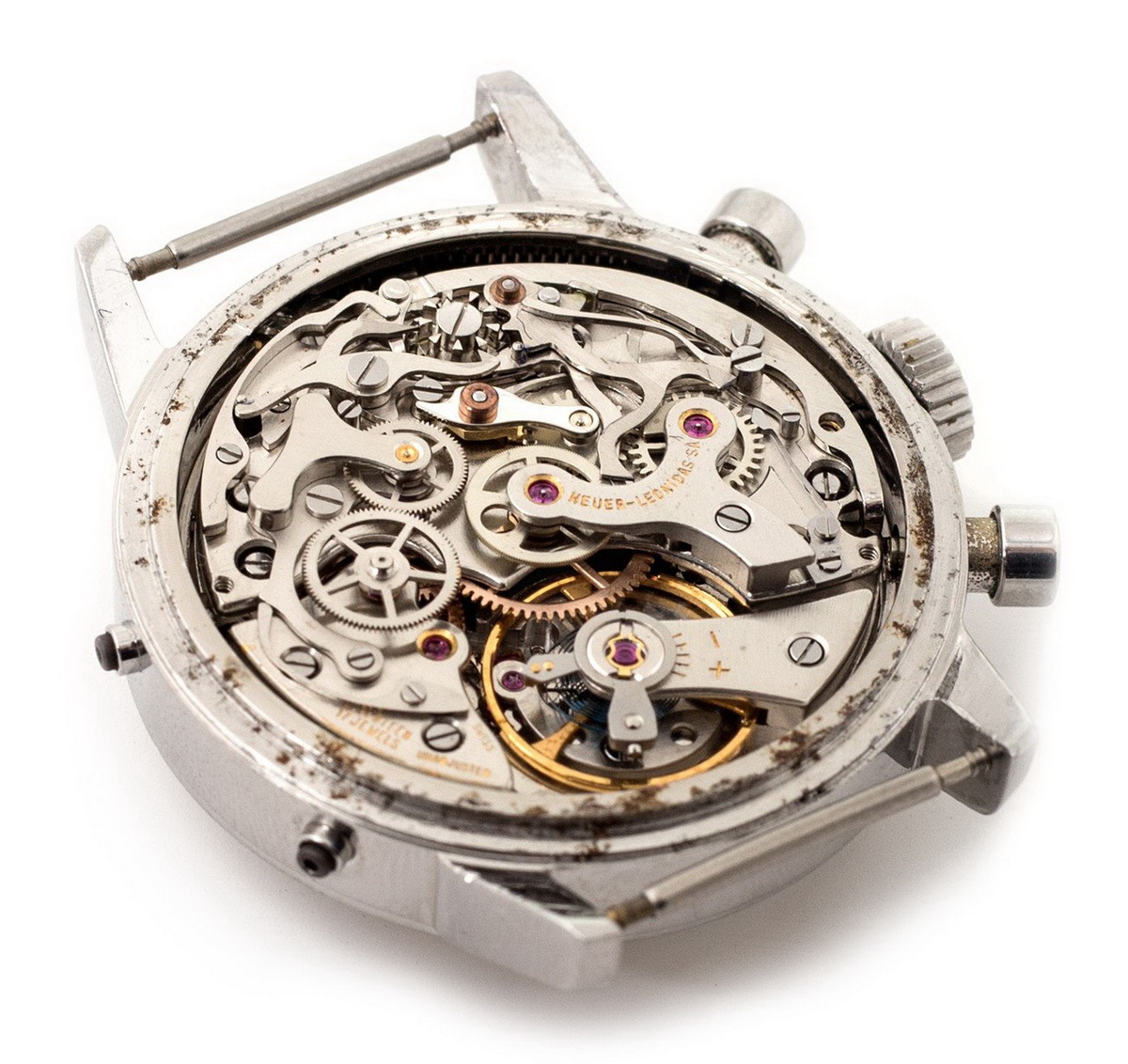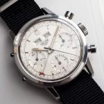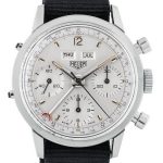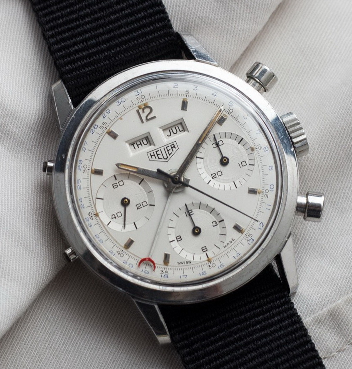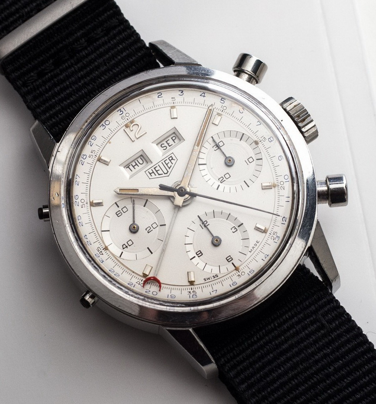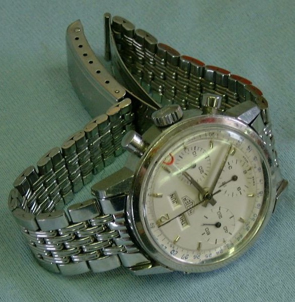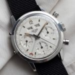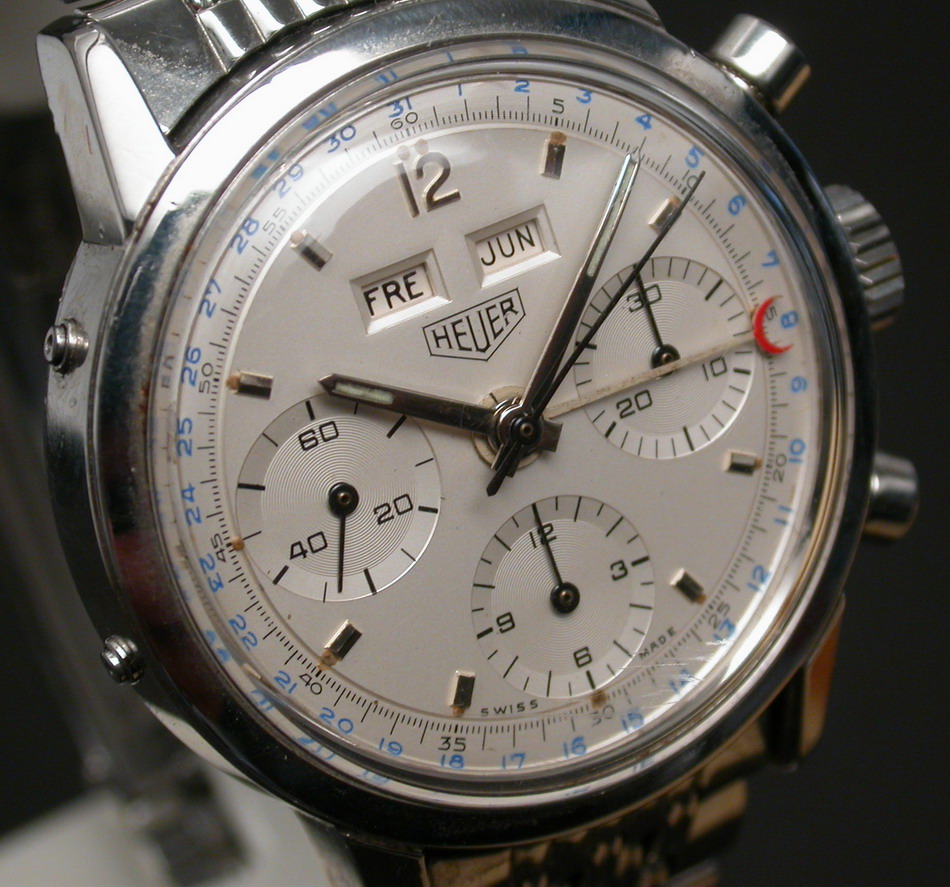 Second execution Carrera 12 Dato (Reference 2547) S has narrow lugs; white dial and registers; monocoque case