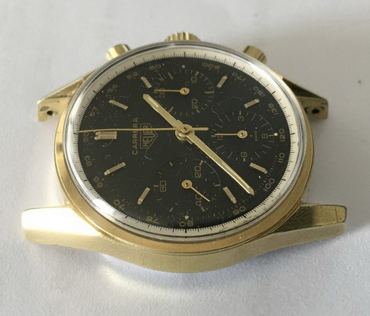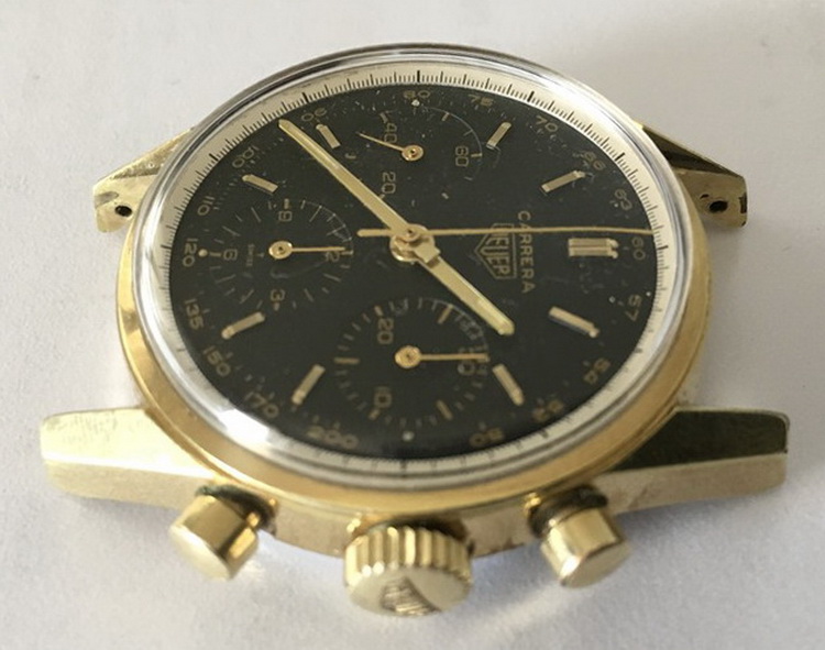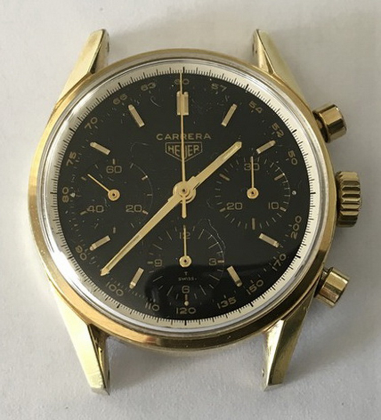 Carrera 12 — Gold-Plated Case; Black Dial with Tachymeter (First Execution)