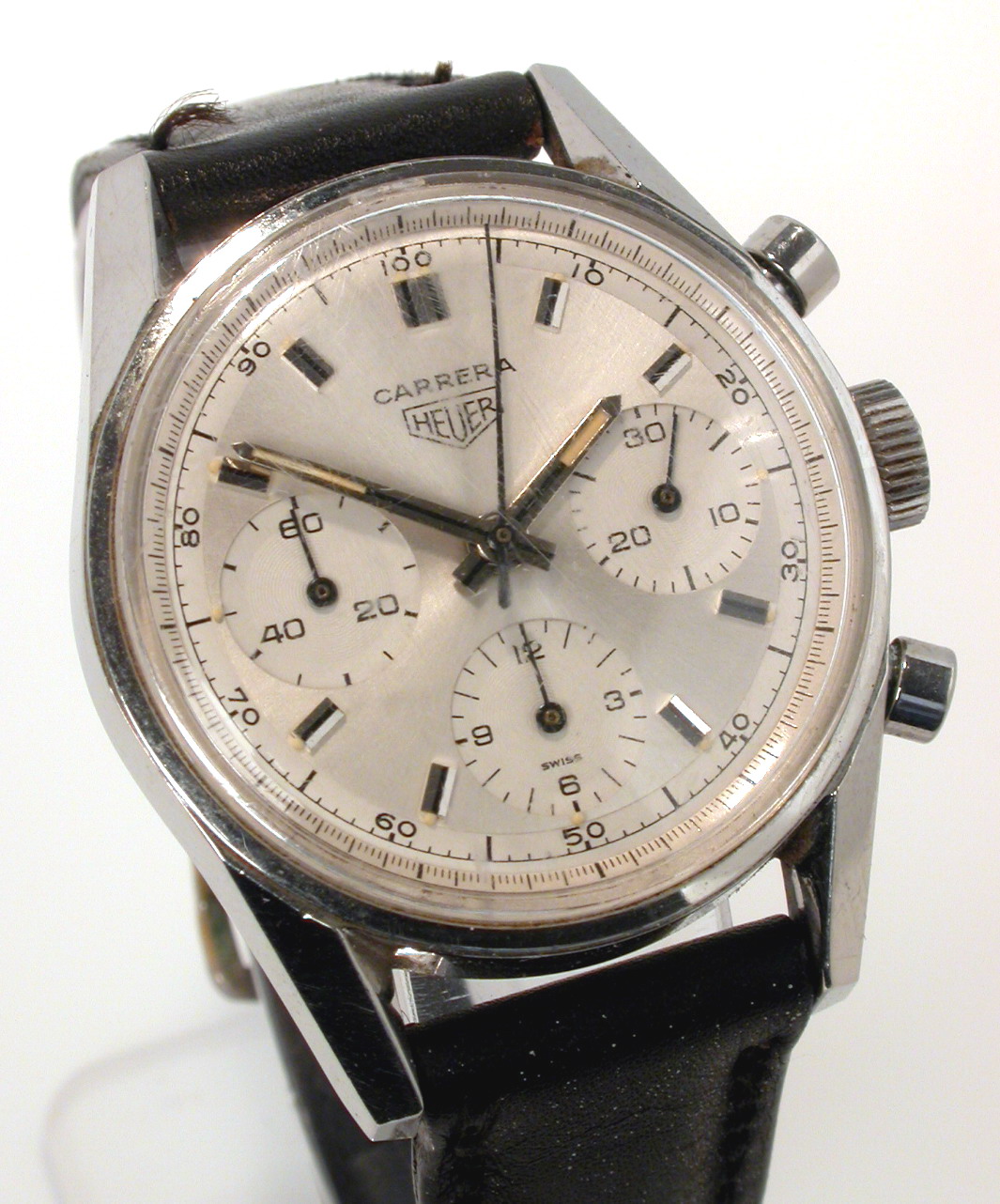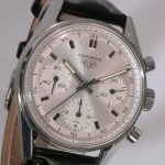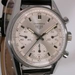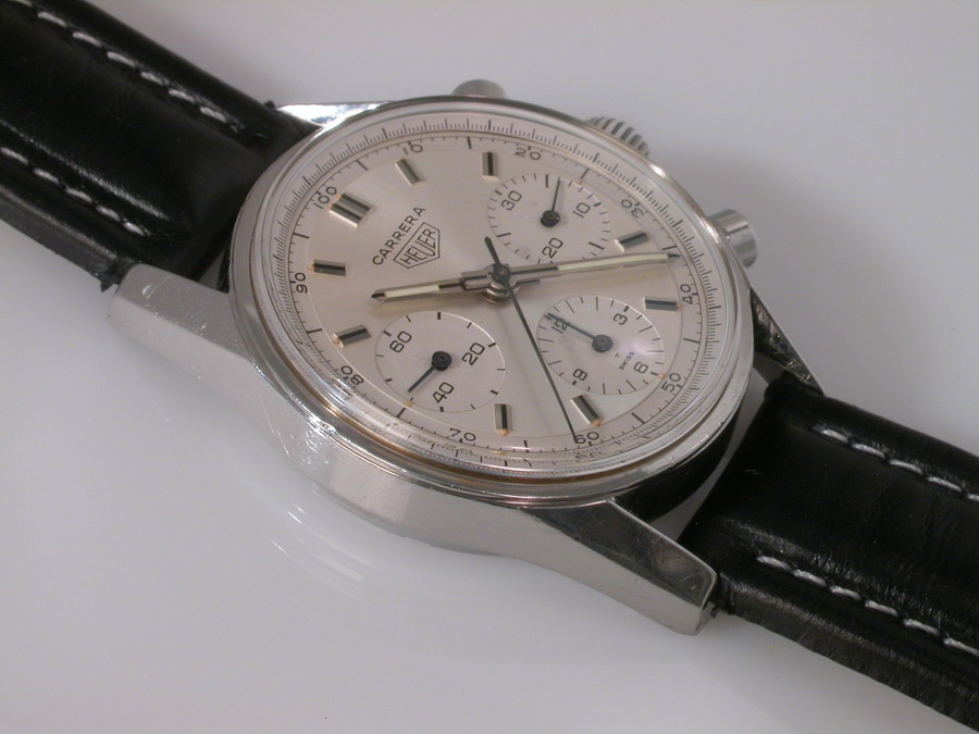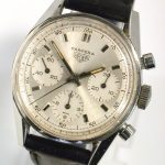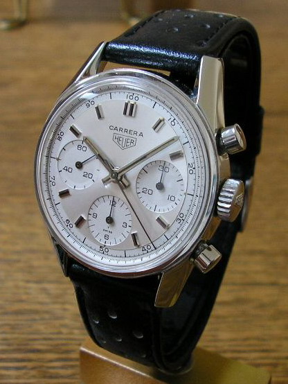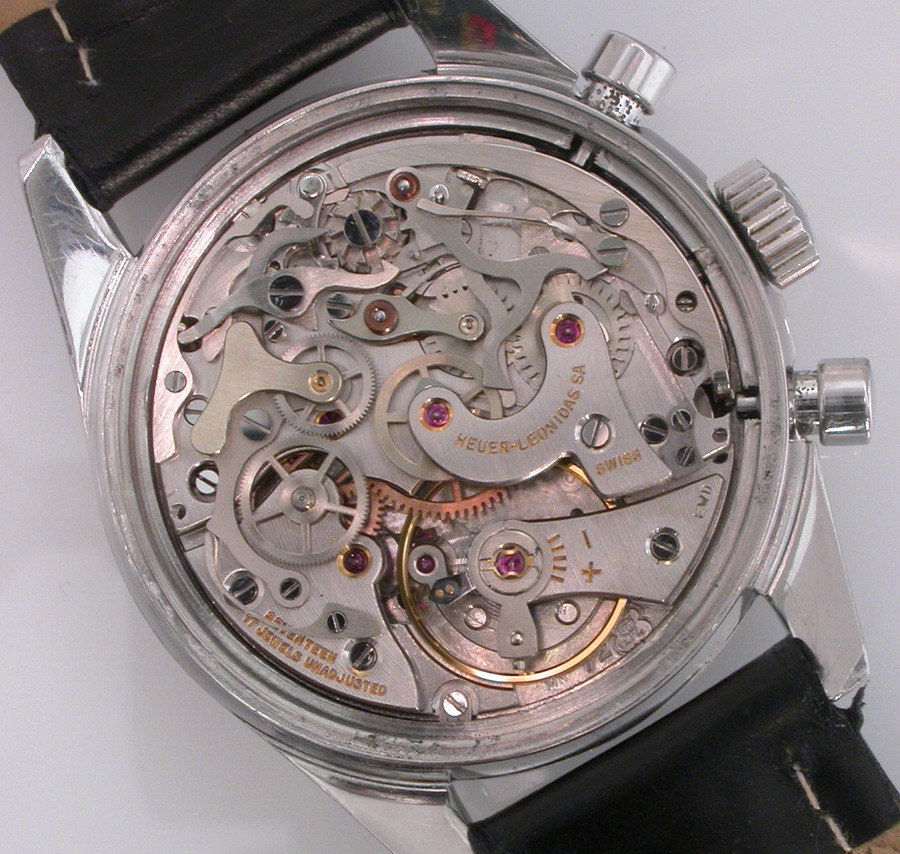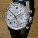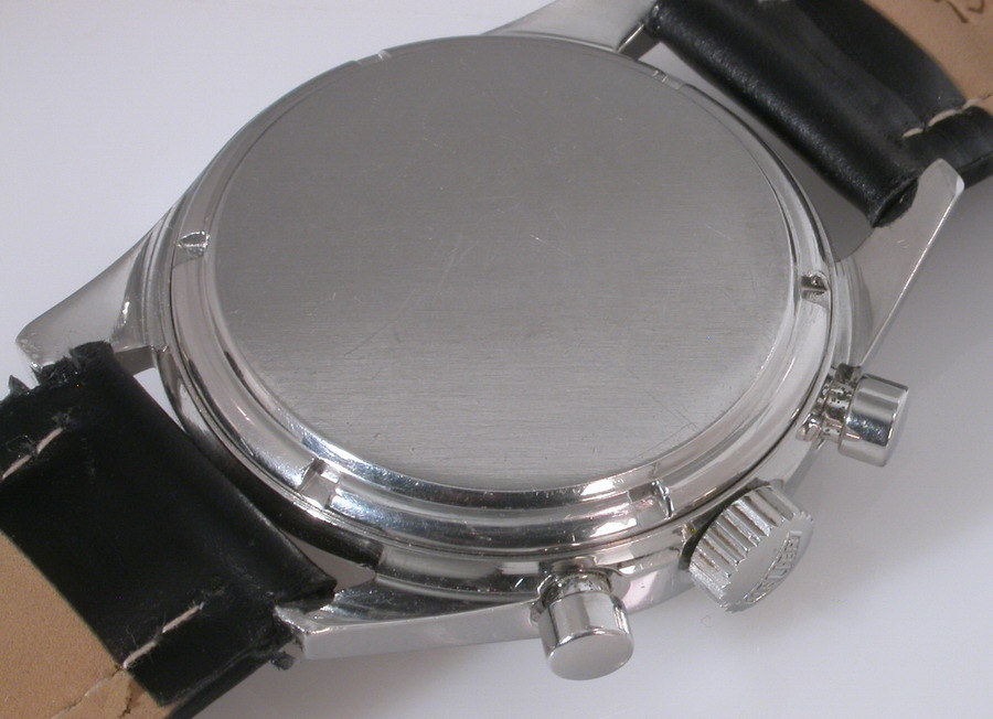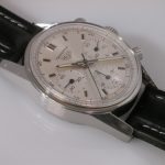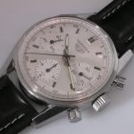 White dial with white registers; black decimal minutes scale