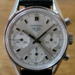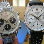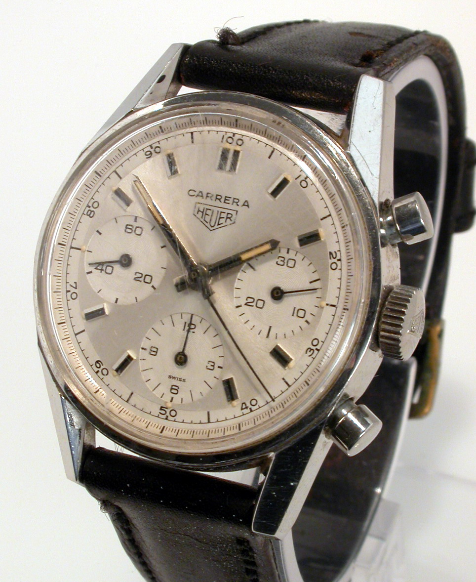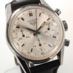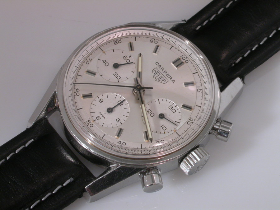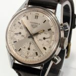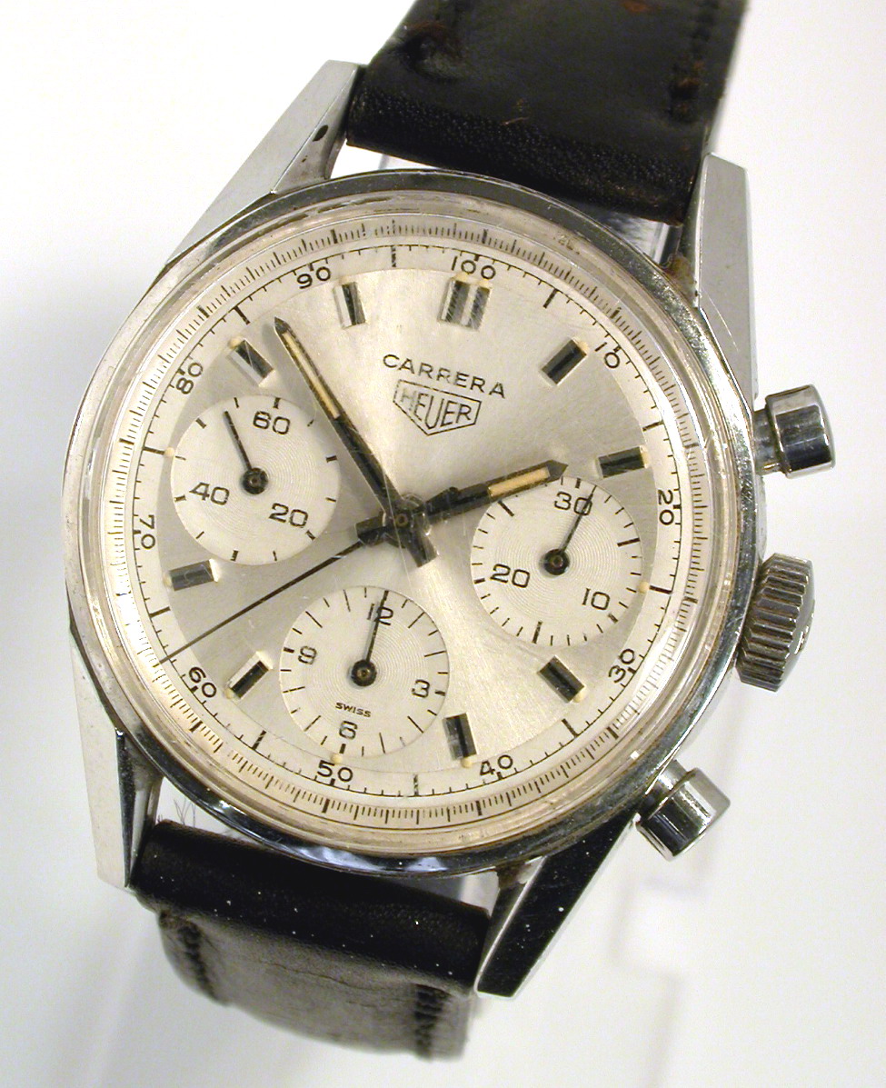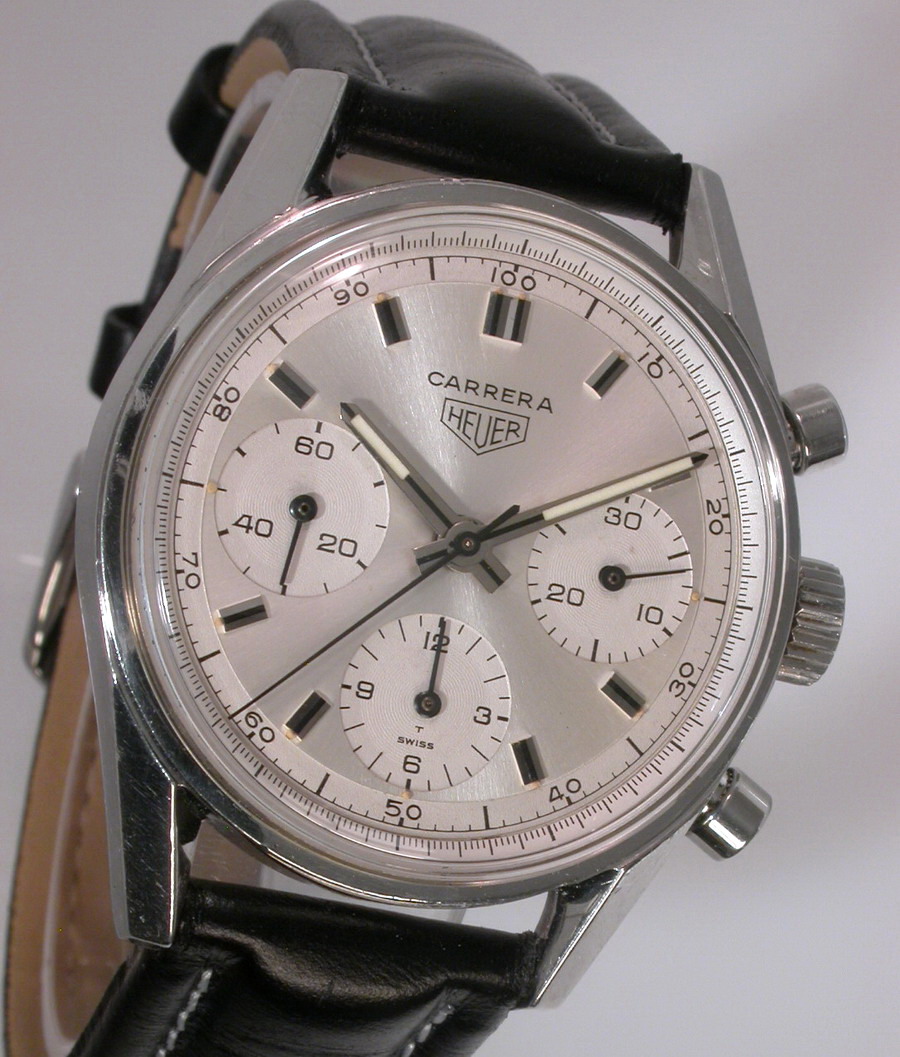White dial with white registers; black decimal minutes scale