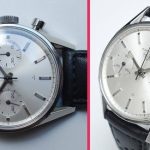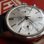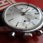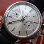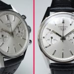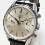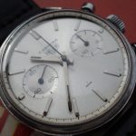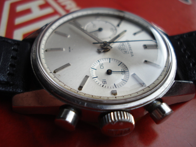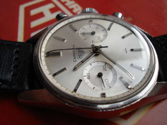 Early dials have flat white paint; leter dials have starburst finish