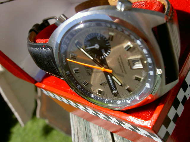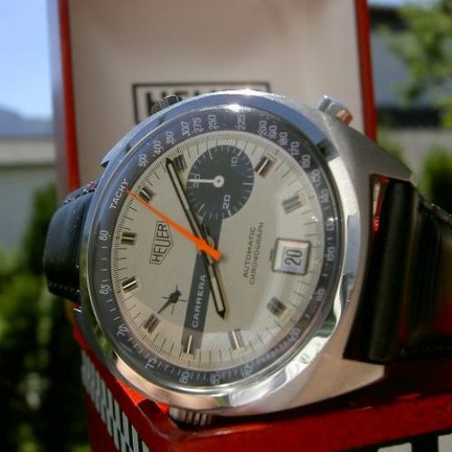 Carrera Reference 1153 S Carrera has silver dial, with charcoal gray minute recorder and inner bezel