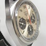 First execution Reference 73653 S has first execution dial and second execution hands, with silver dial and black registers; three registers