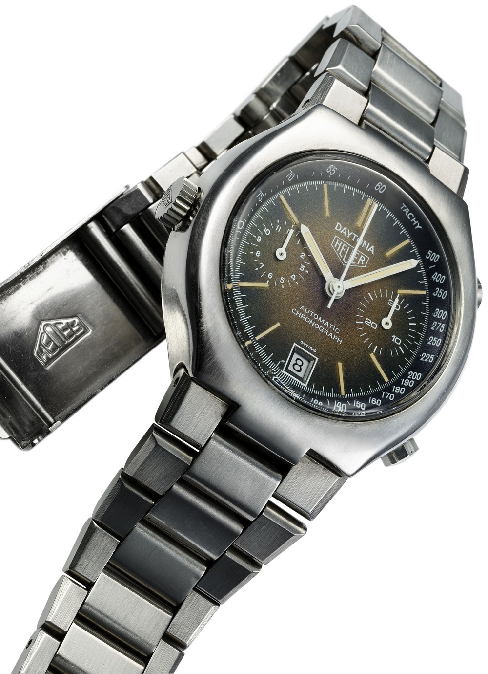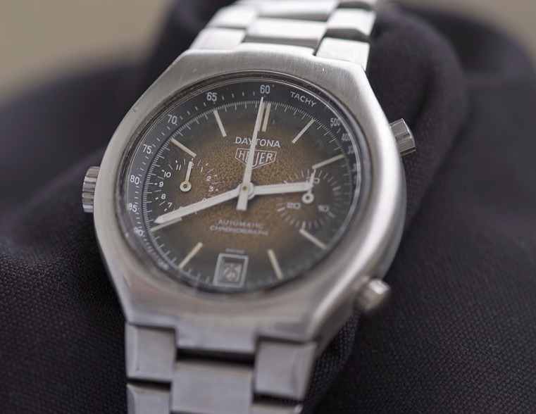 The Daytona Reference 110.203F chronograph has a fume (smoke) dial with painted white hands