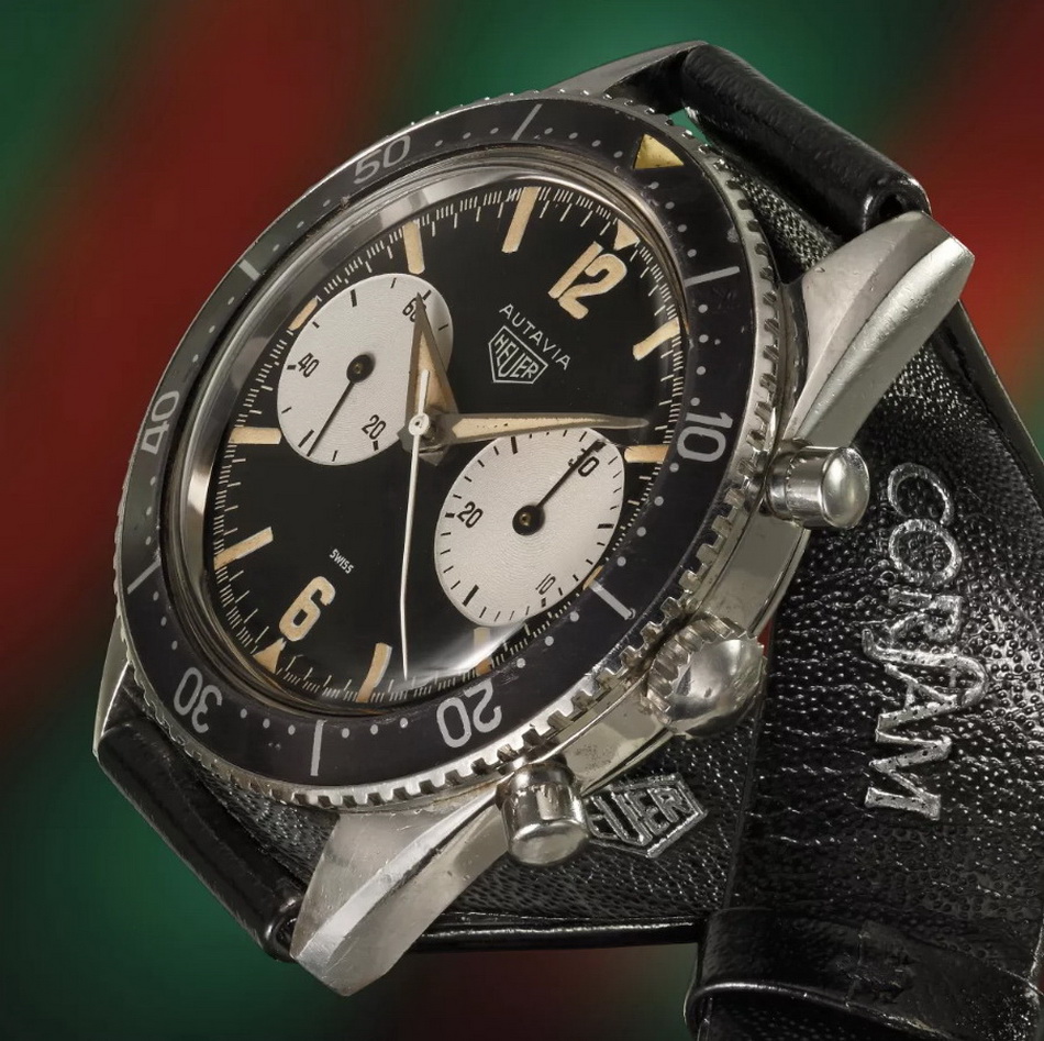 Sold by Phillips, on November 11, 2017, in the “Heuer Parade” auction, for CHF 87,500 (final price); Link to auction catalog