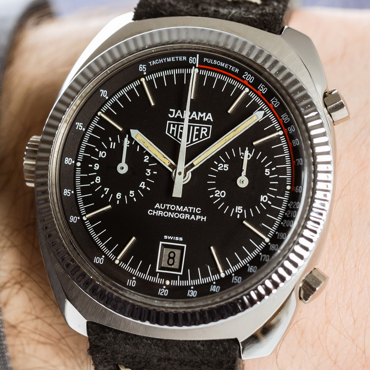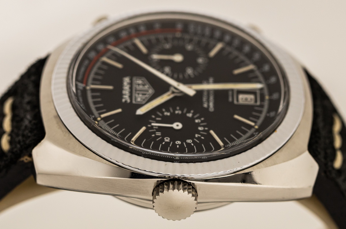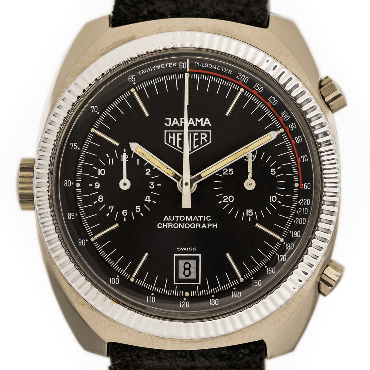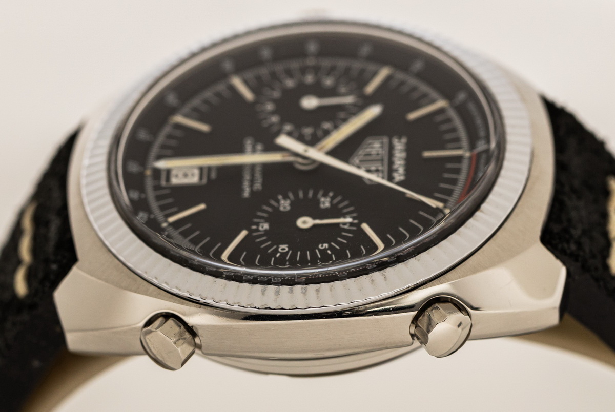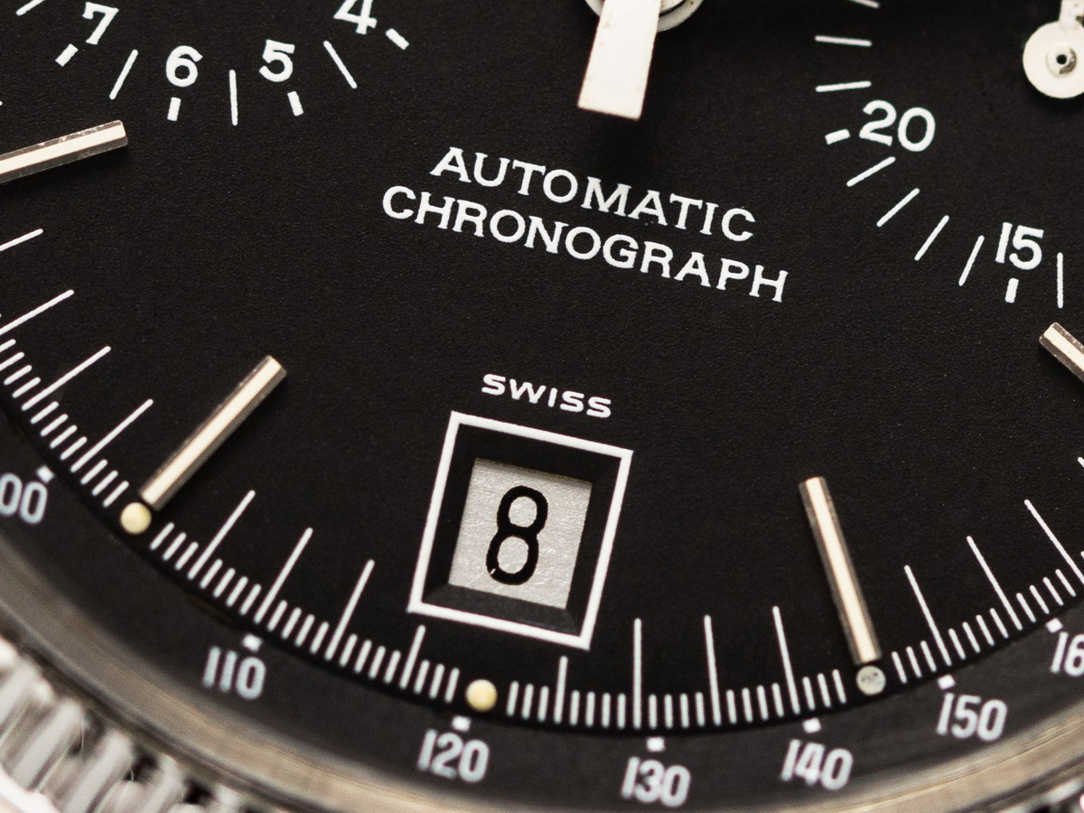 This version of the Reference 110.245 Jarama has a stainless steel case with white gold bezel; black dial