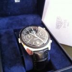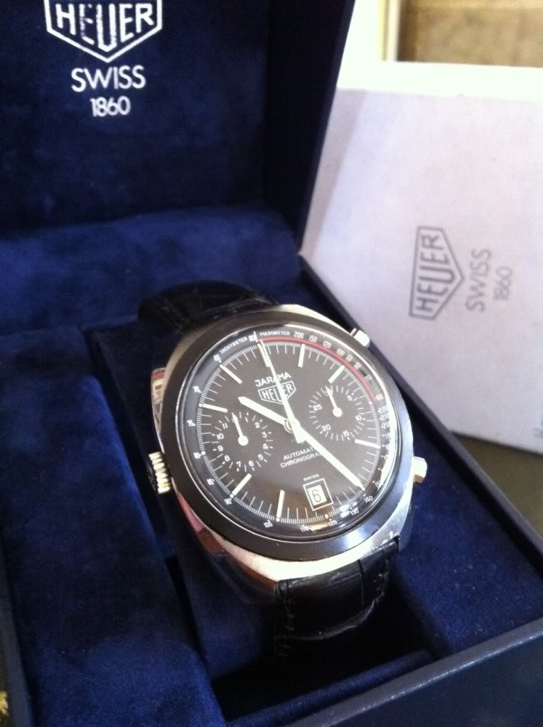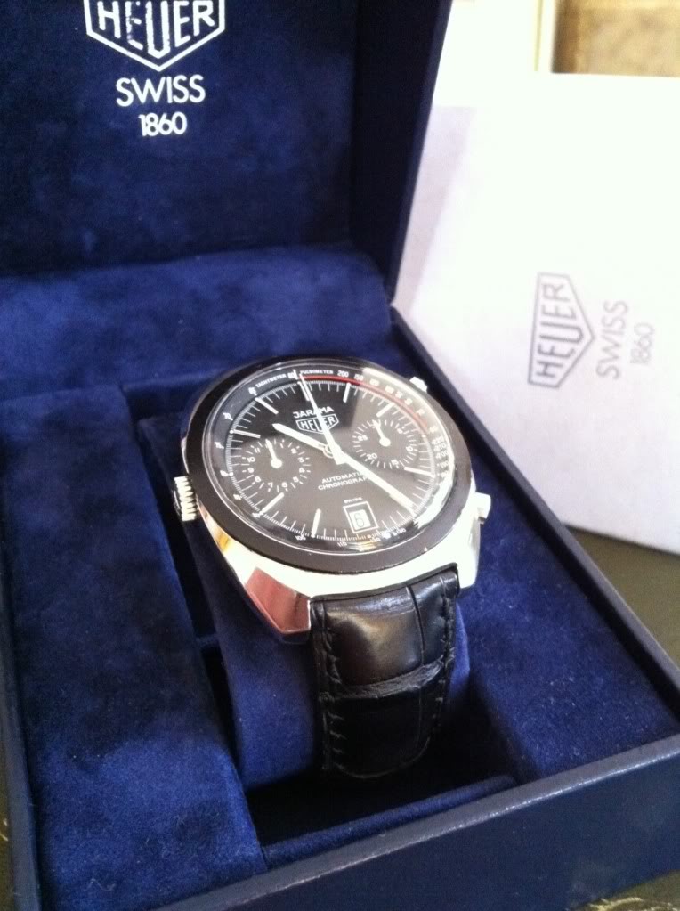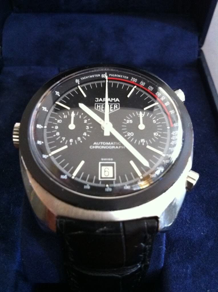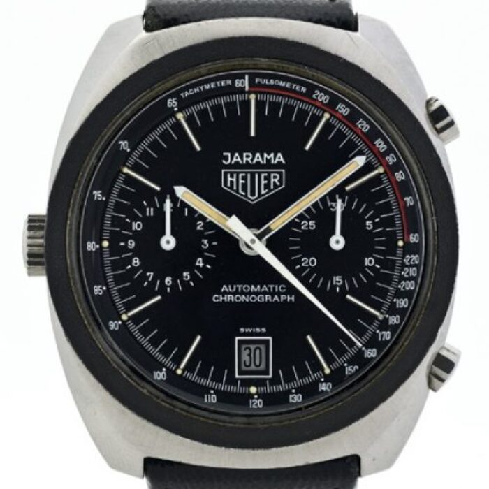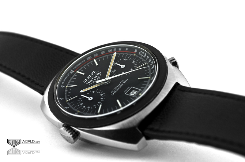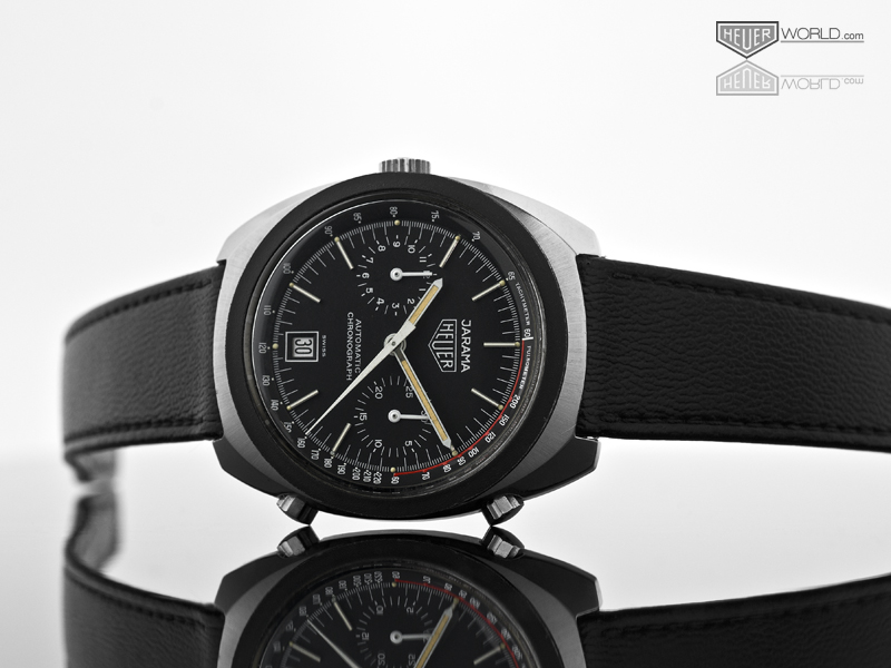 The Reference 110.223 Jarama has a stainless steel case with smooth black bezel