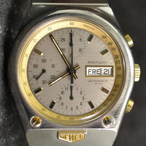 Kentucky Reference 750.705G has stainless steel and gold-plated case; gray dial and registers