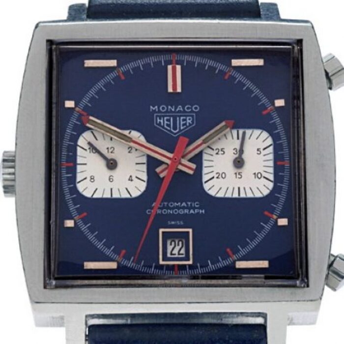 Standard production model has flat midnight blue paint; brushed steel hands, with red and luminous inserts and triangular red tips